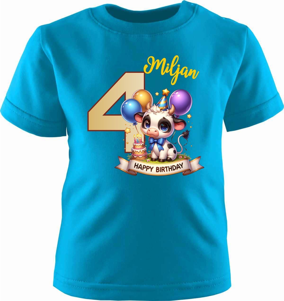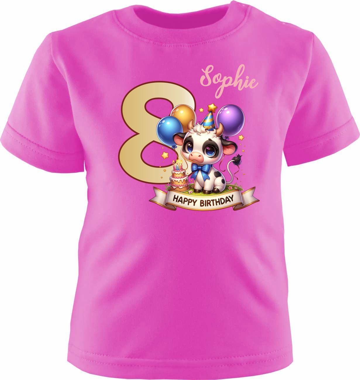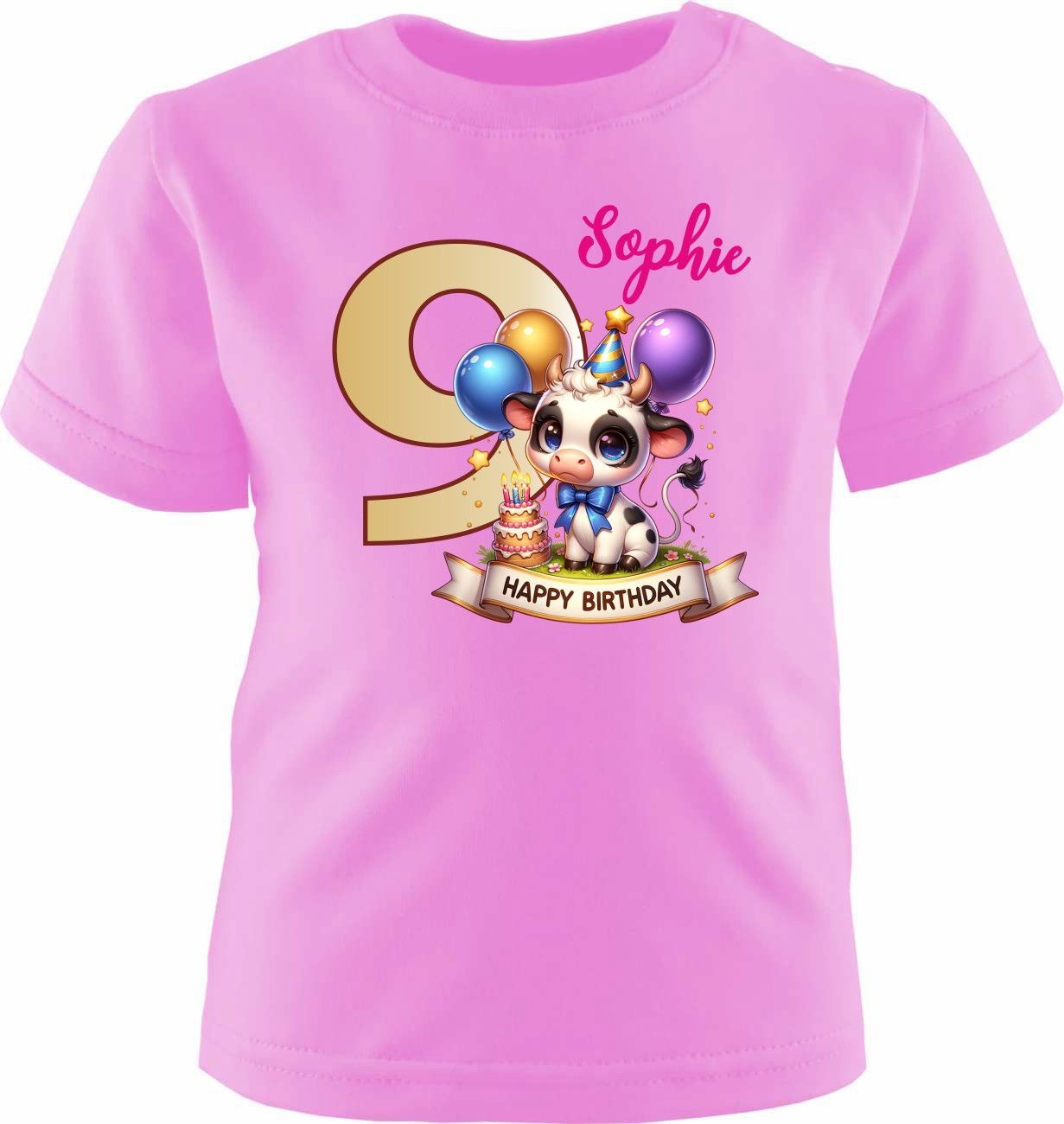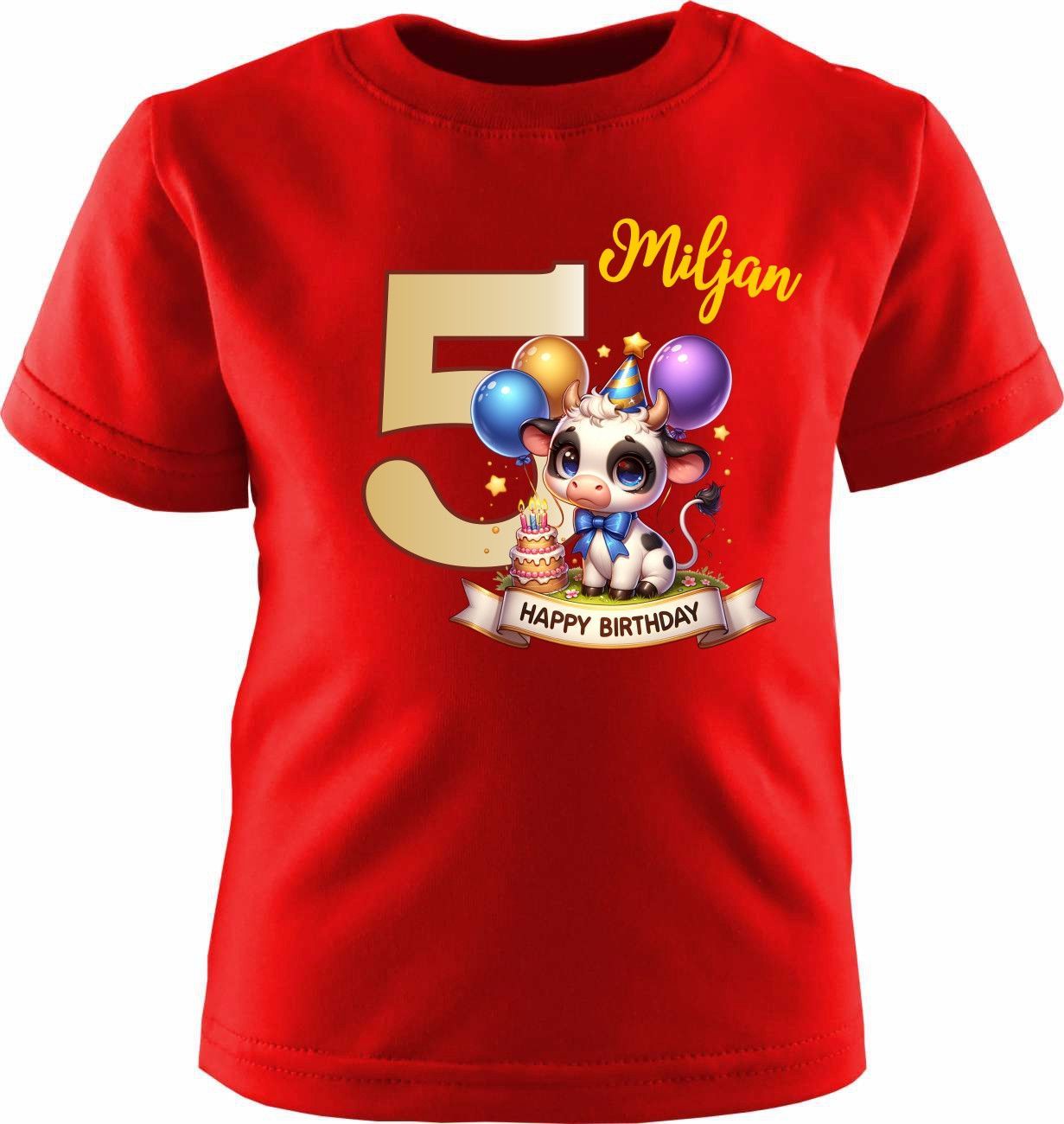 Kinder Geburtstagsshirt kurzarm HAPPY Birthday KUH mit Namen und Geburtstagszahl