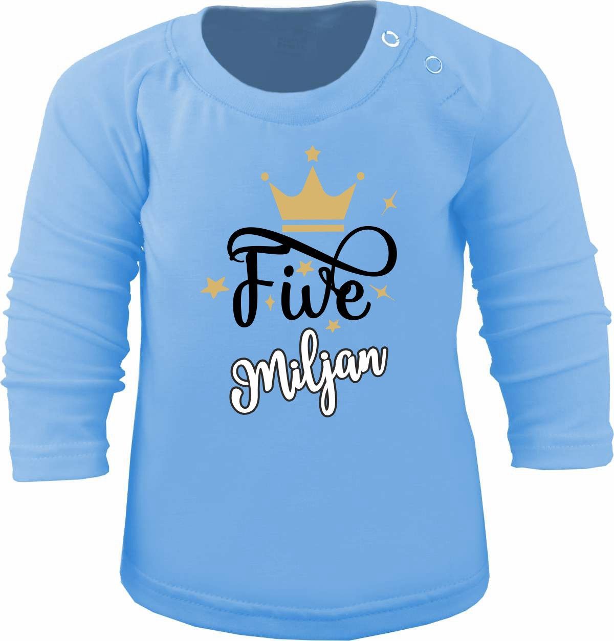 Kinder Geburtstagsshirt Langarm KRONE mit Namen + Geburtstagszahl frei wählbar
