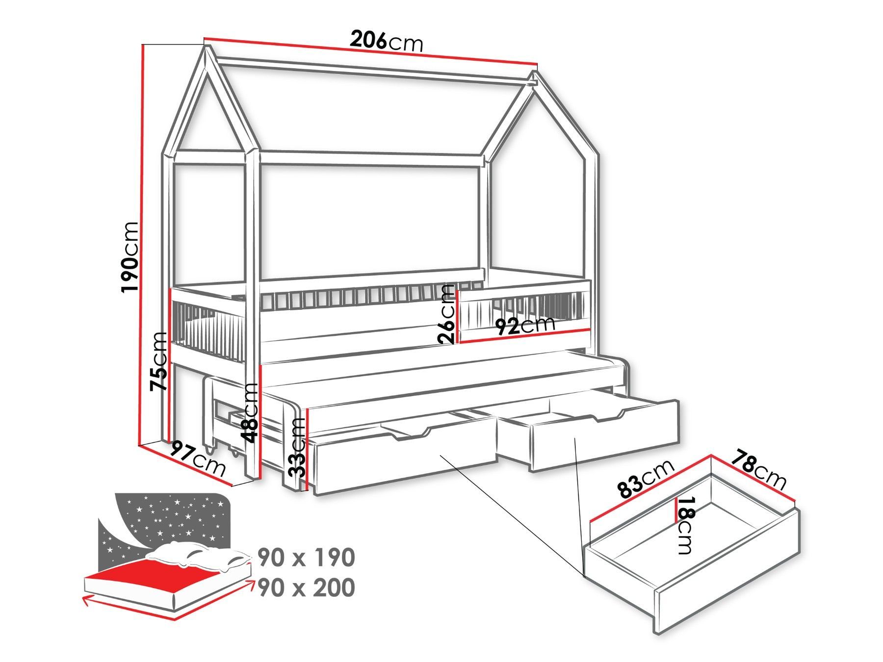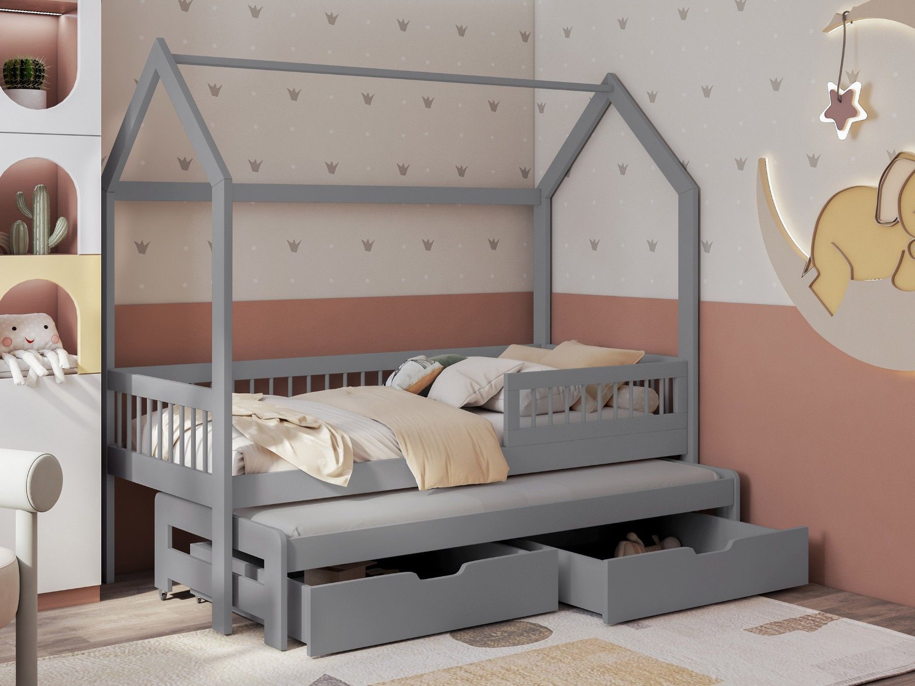 Kinder Hausbett Asher 90 Kinderbett Jugendbett mit zwei Bettkästen Kinderzimmer