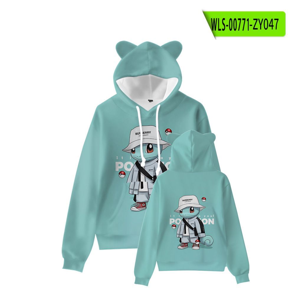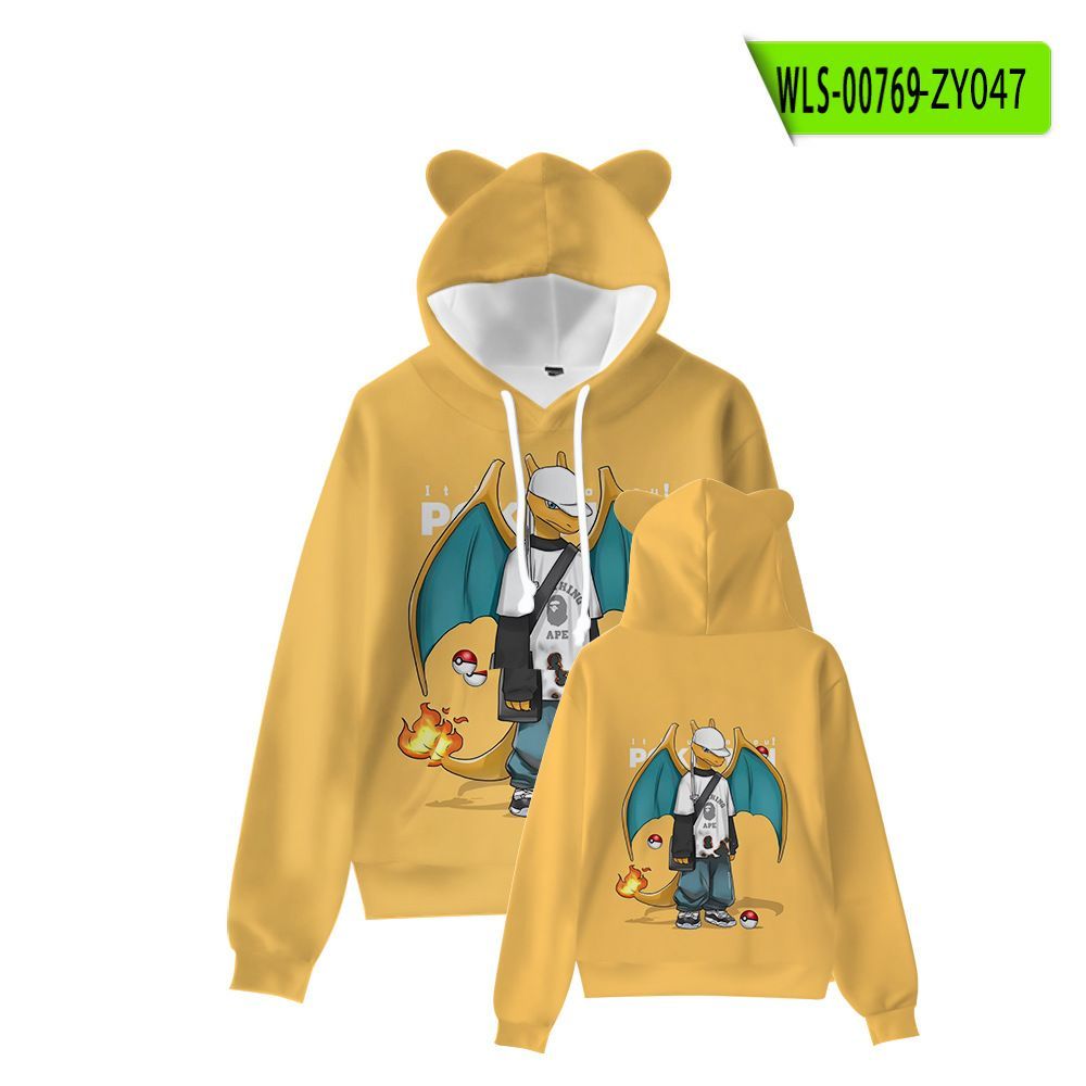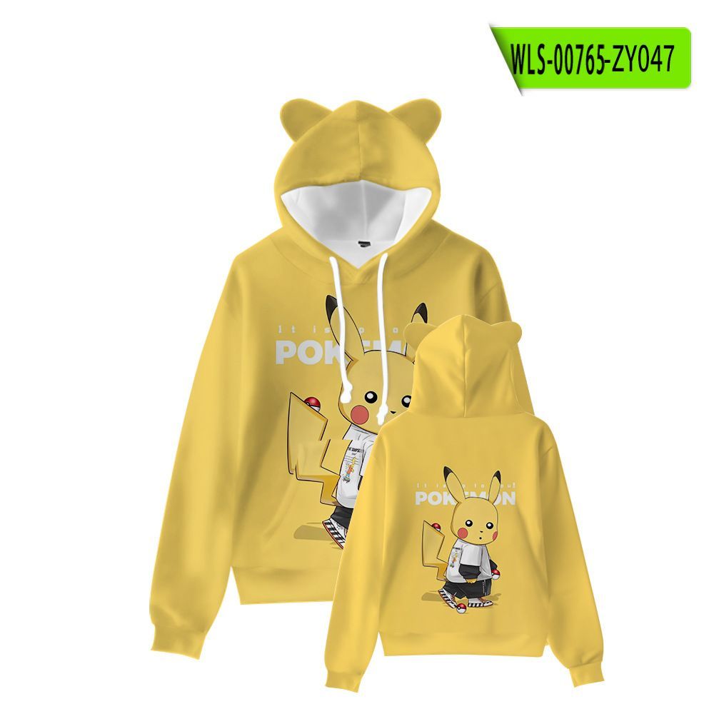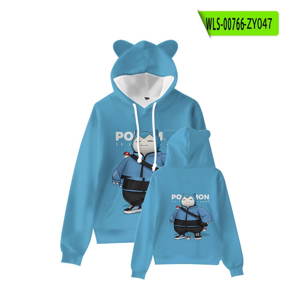 Kinder Hoodie Pikachu Snorlax 3D Druck Katzenohren Sweatshirts Herbst Warme Pullover