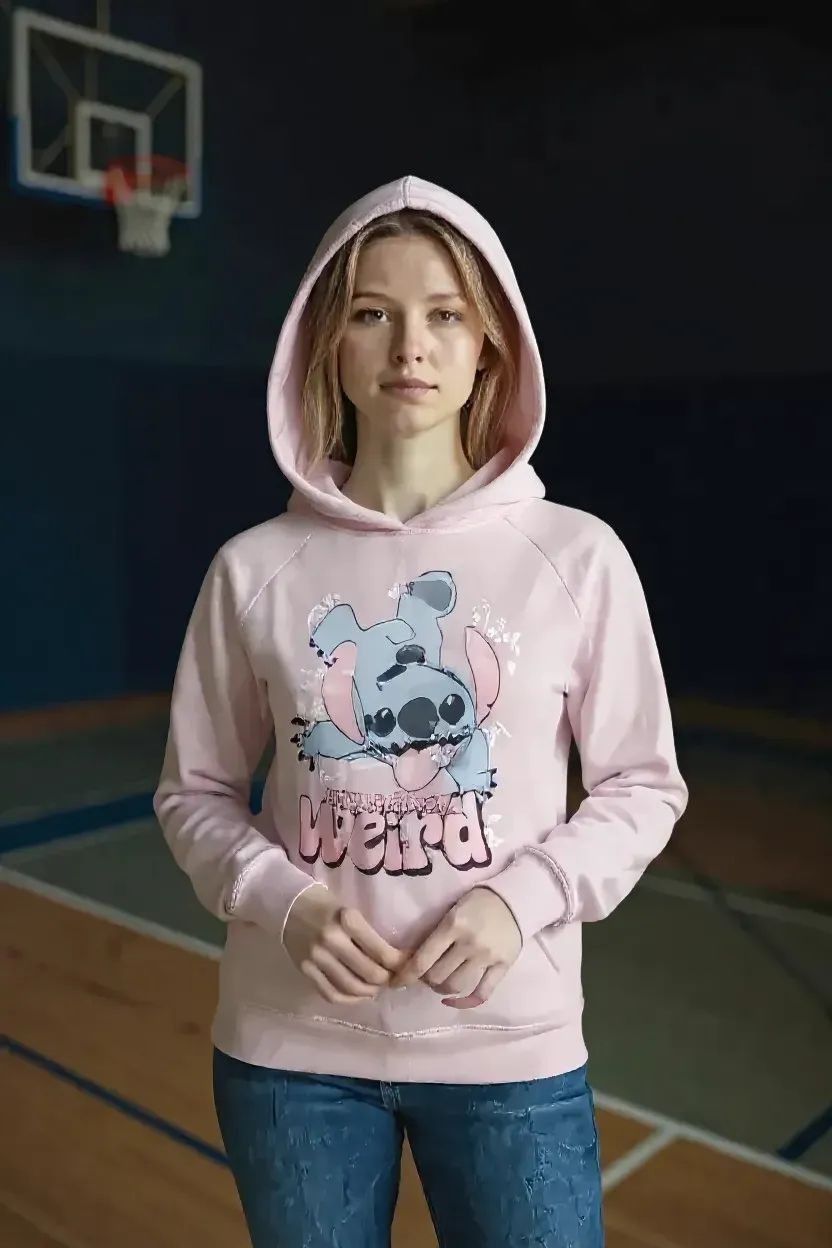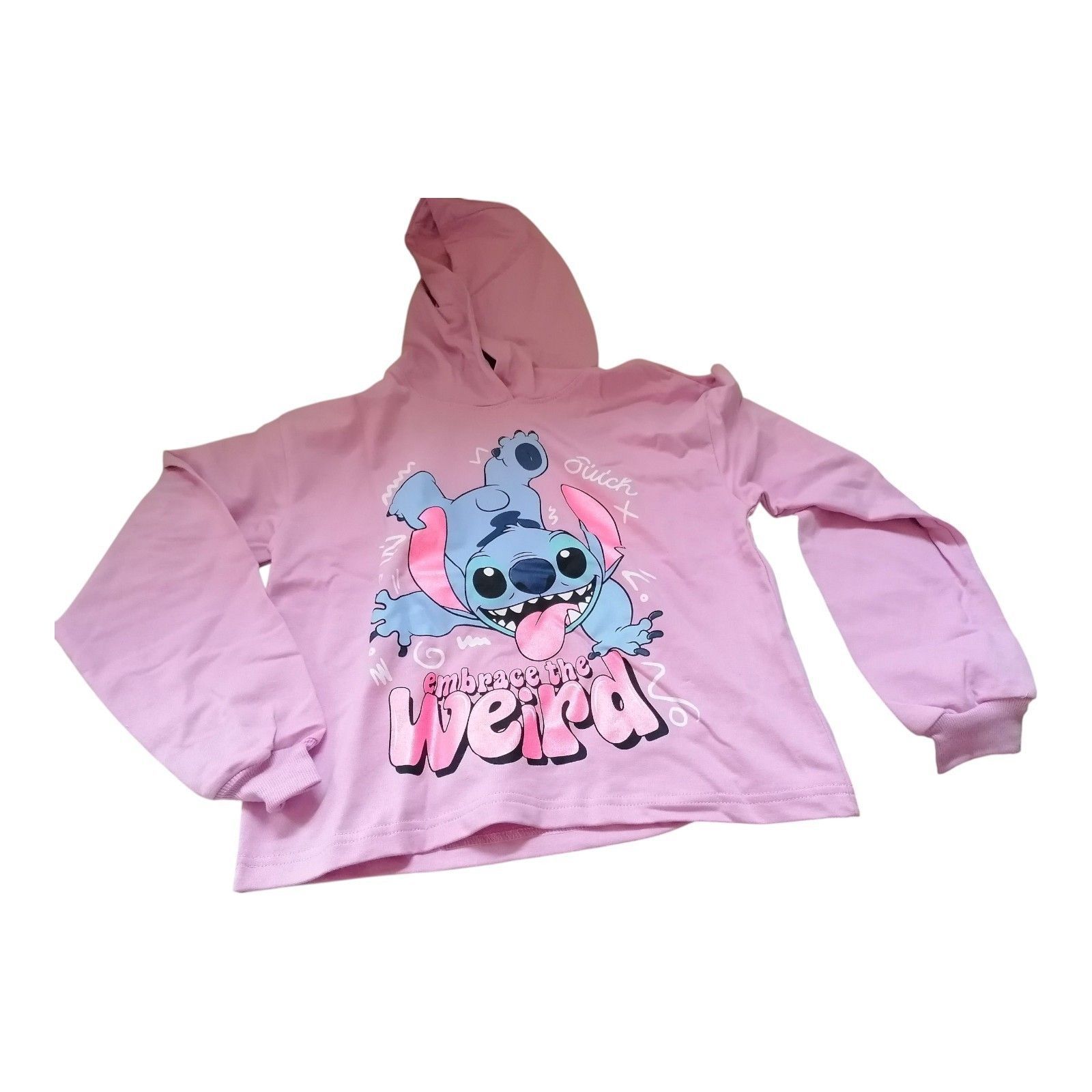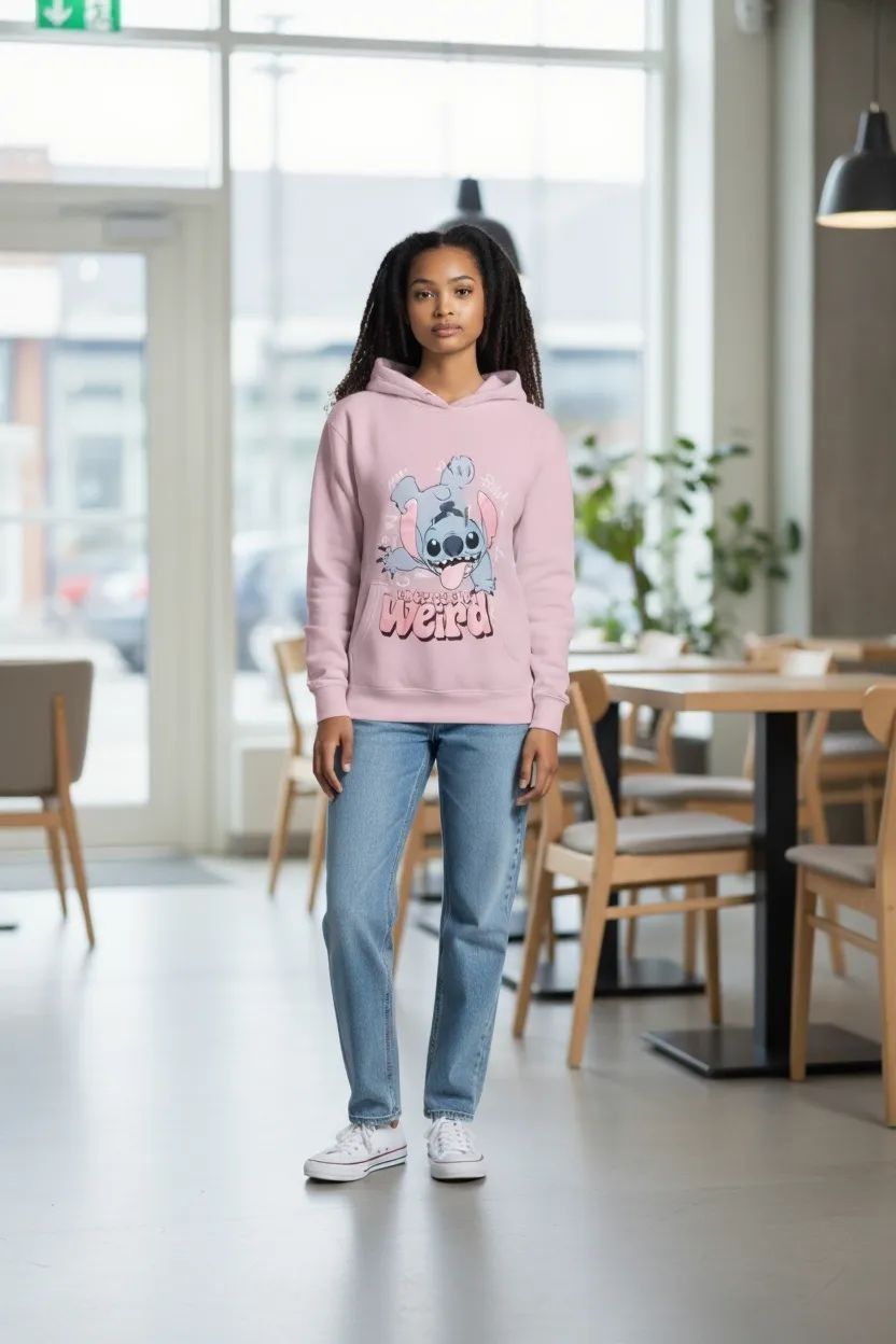 Kinder-Hoodie „Stitch – Embrace the Weird“ | Frontprint | 100 % Baumwolle | Rosa