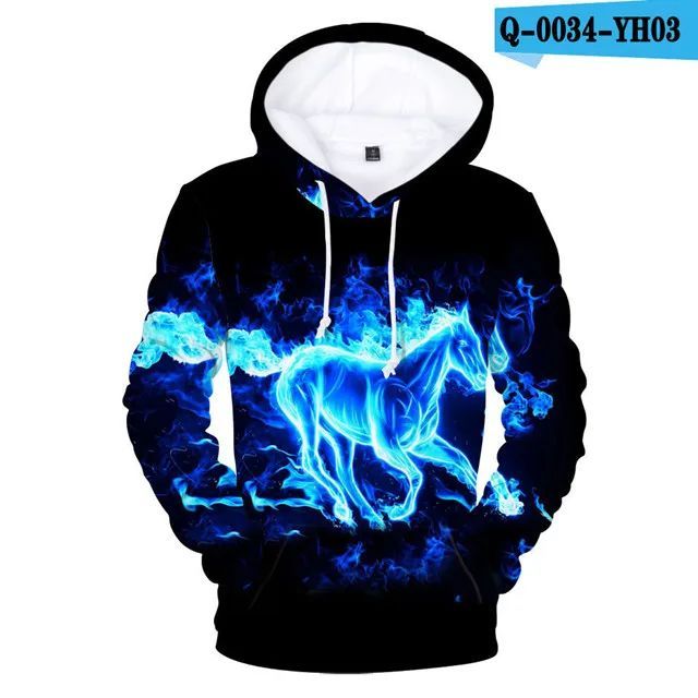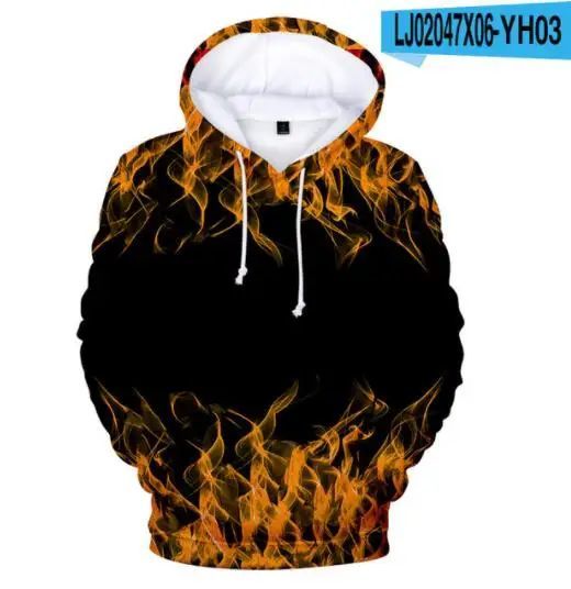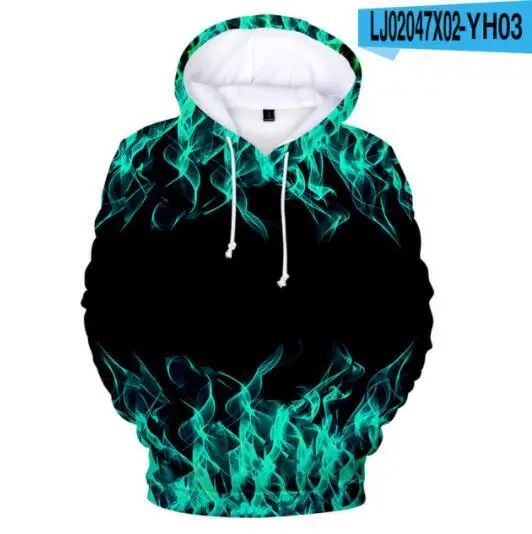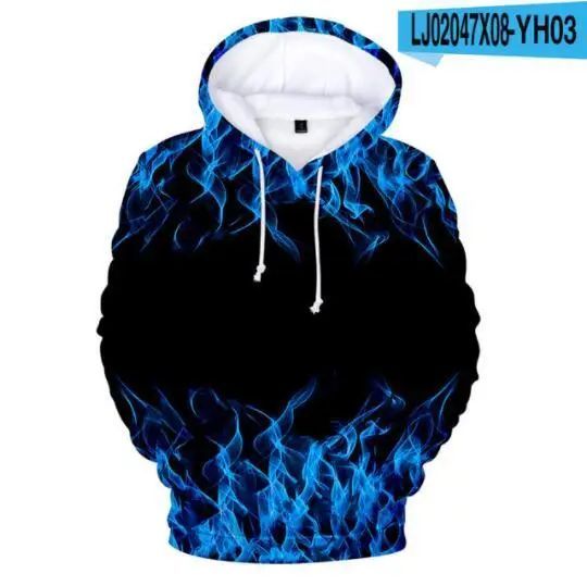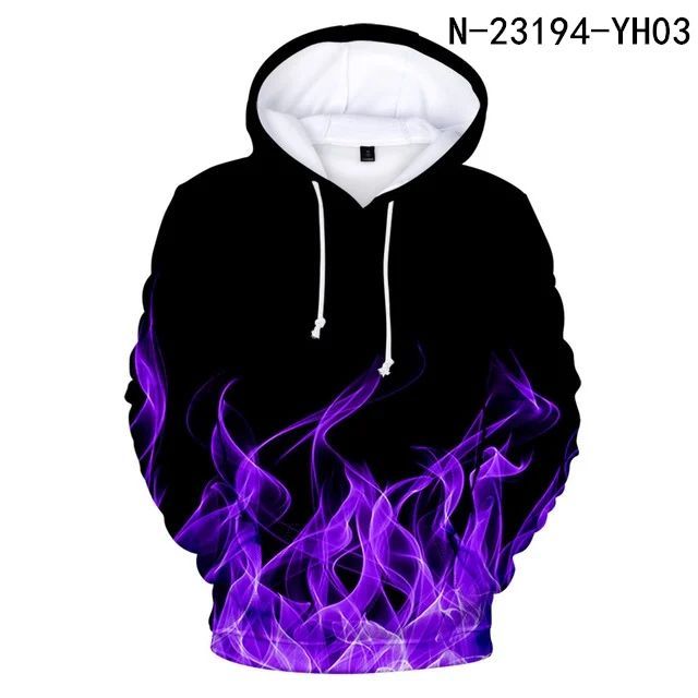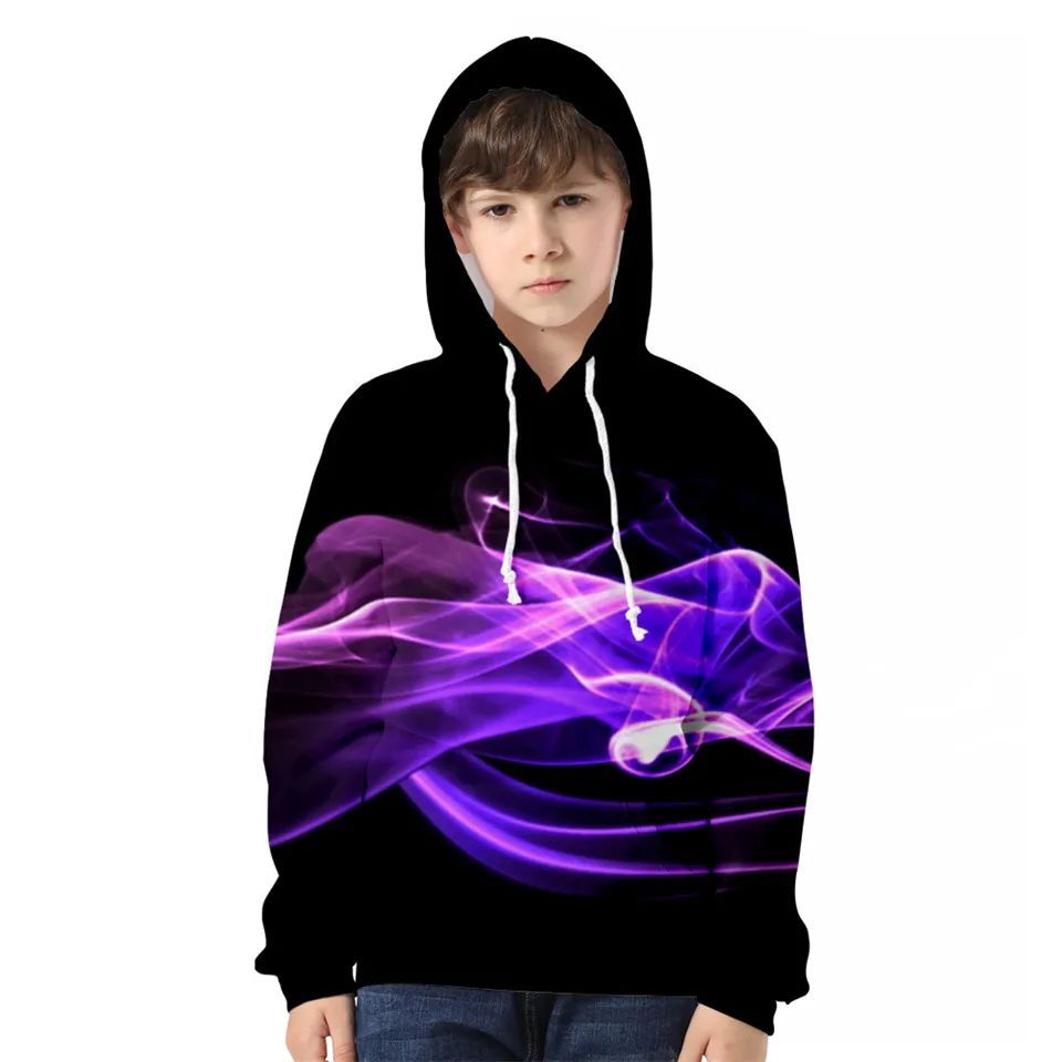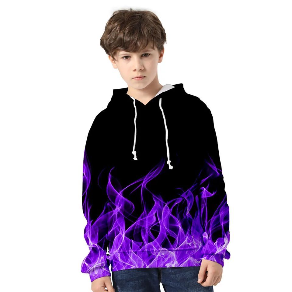 Kinder Jahre blau lila 3D Feuerflam Motiv Harajuku Hoodies Pullover Jacket