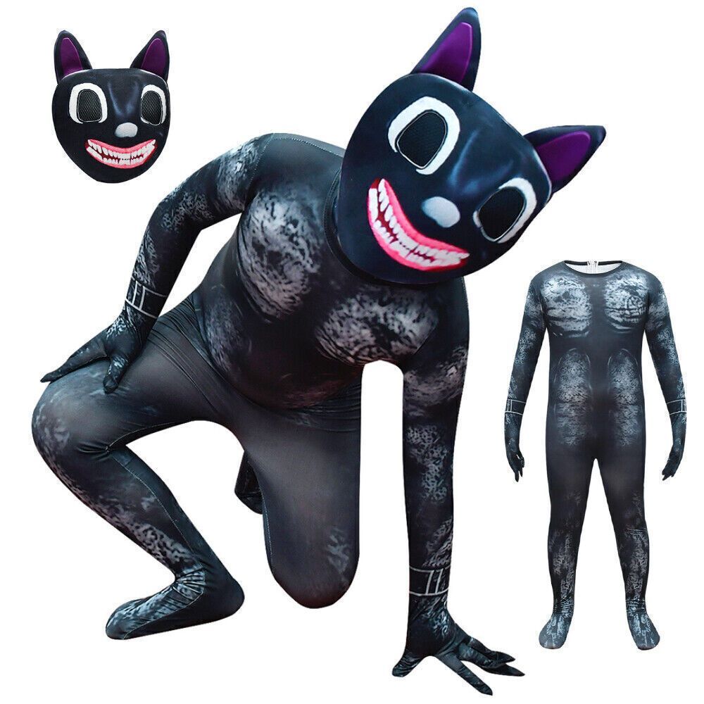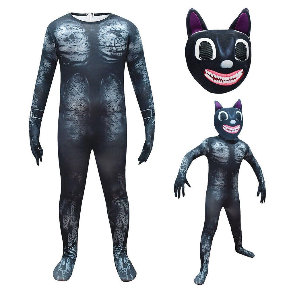 Kinder Junge Schwarze Katze Jumpsuit Halloween Cosplay Kostum Maske Horror DE