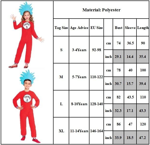 Kinder Jungen Madchen Thing One 1 / Thing Two 2 Cosplay Kostum Karneval Fasching