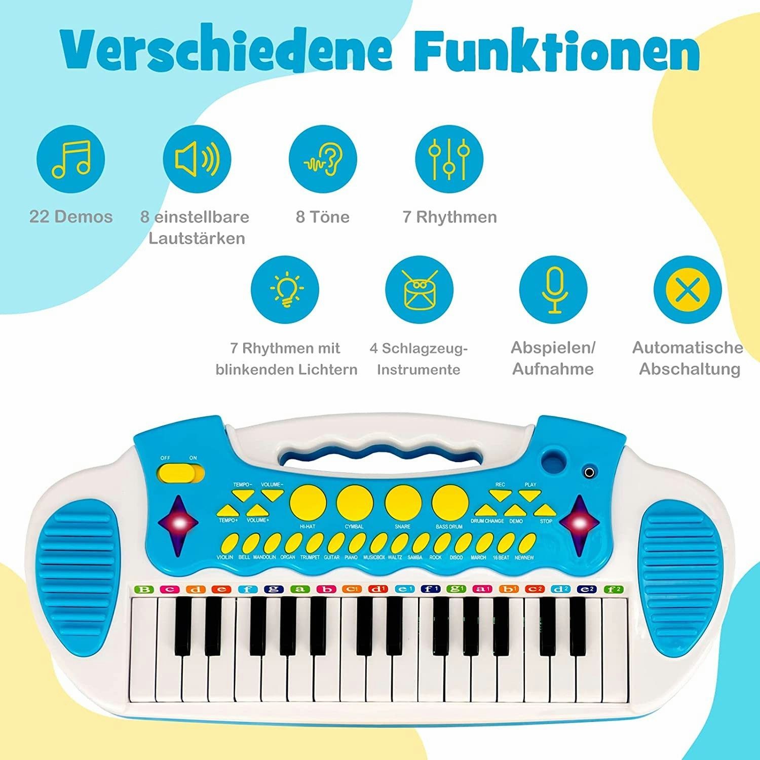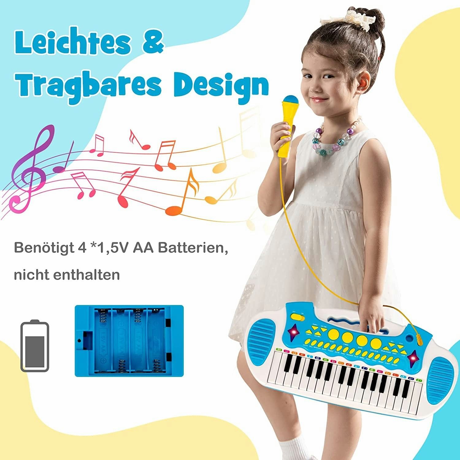 Kinder-Keyboard mit 31 Tasten, tragbares Musikinstrument mit Mehreren Sounds & Lichte