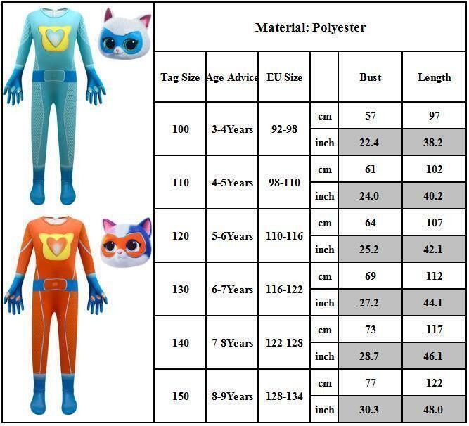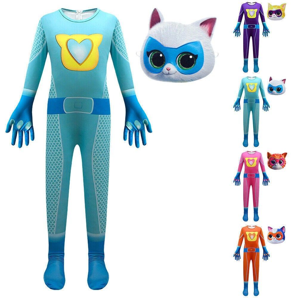 Kinder Kostum Super Kitties Cosplay Jumpsuit Maske Karneval Party Outfit Set DE