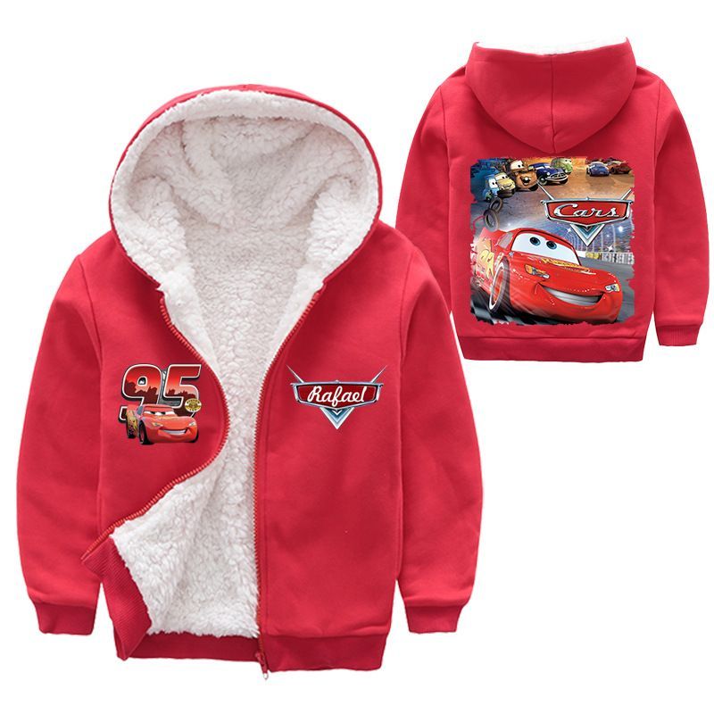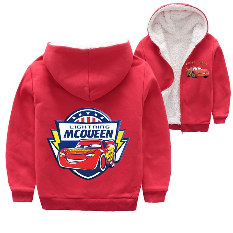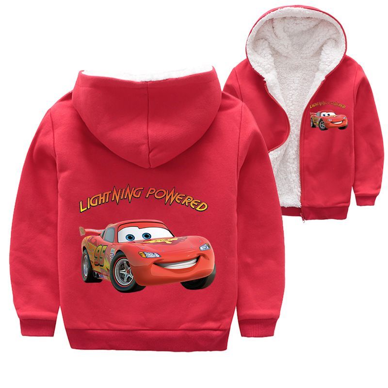 Kinder Lightning McQueen Hoodie 3D Druck Zip Sweatshirts Mantel mit Berber Fleece