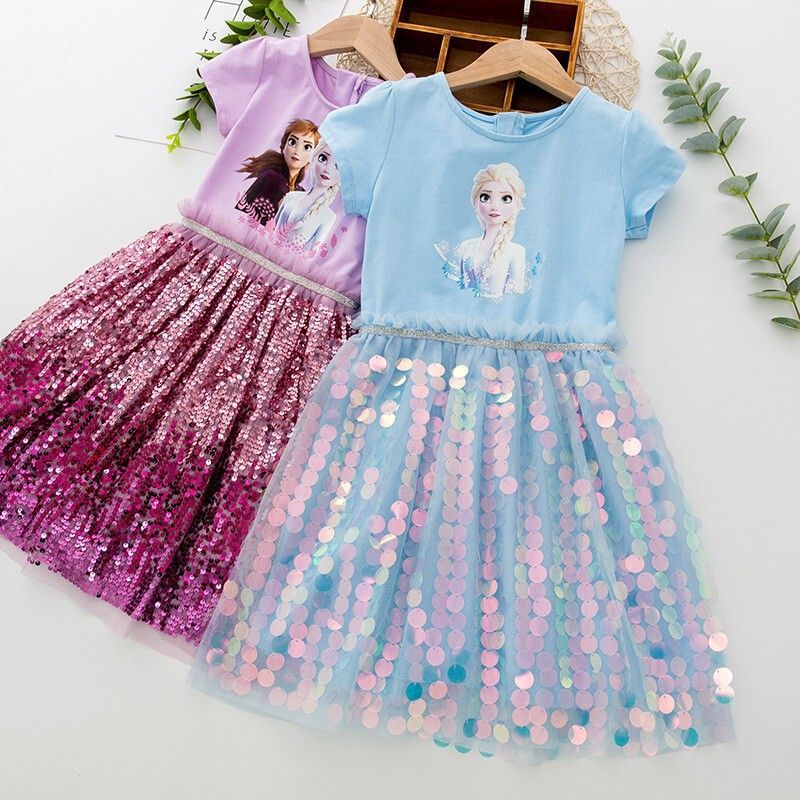 Kinder Madchen Elsa Anna Pailletten Prinzessin Kleid Partykleid Cosplay