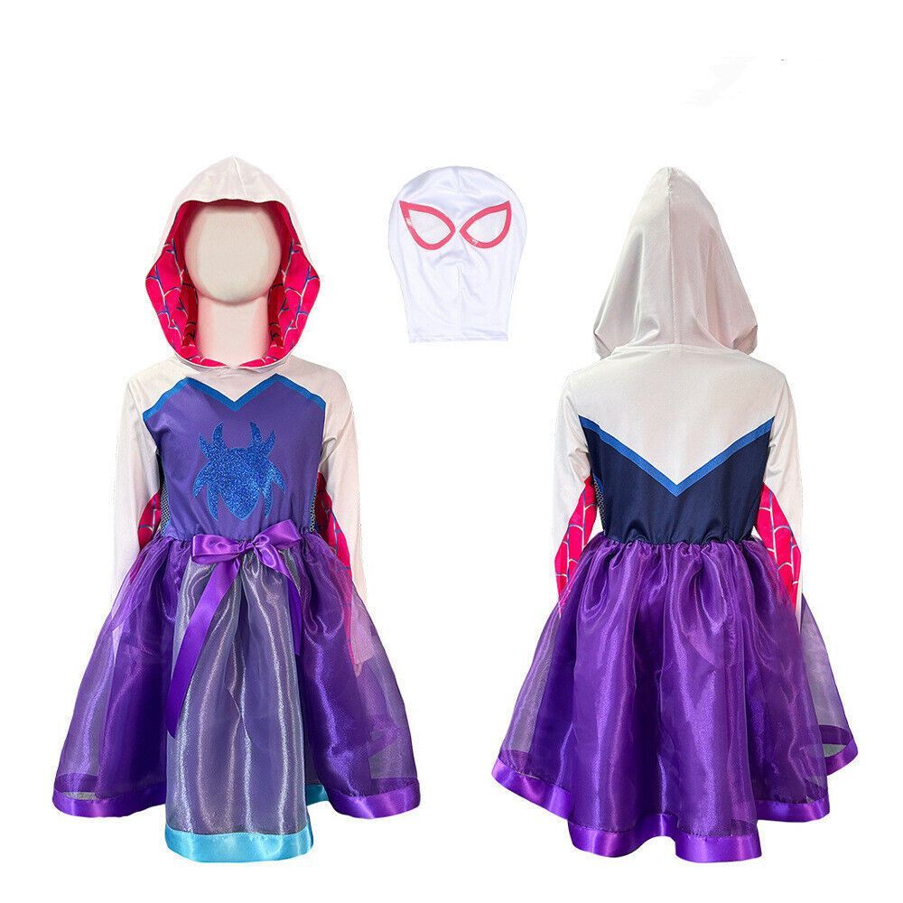 Kinder Madchen Ghost Spider Stacy Gwen Cosplay Halloween Kostum Kleid + Maske