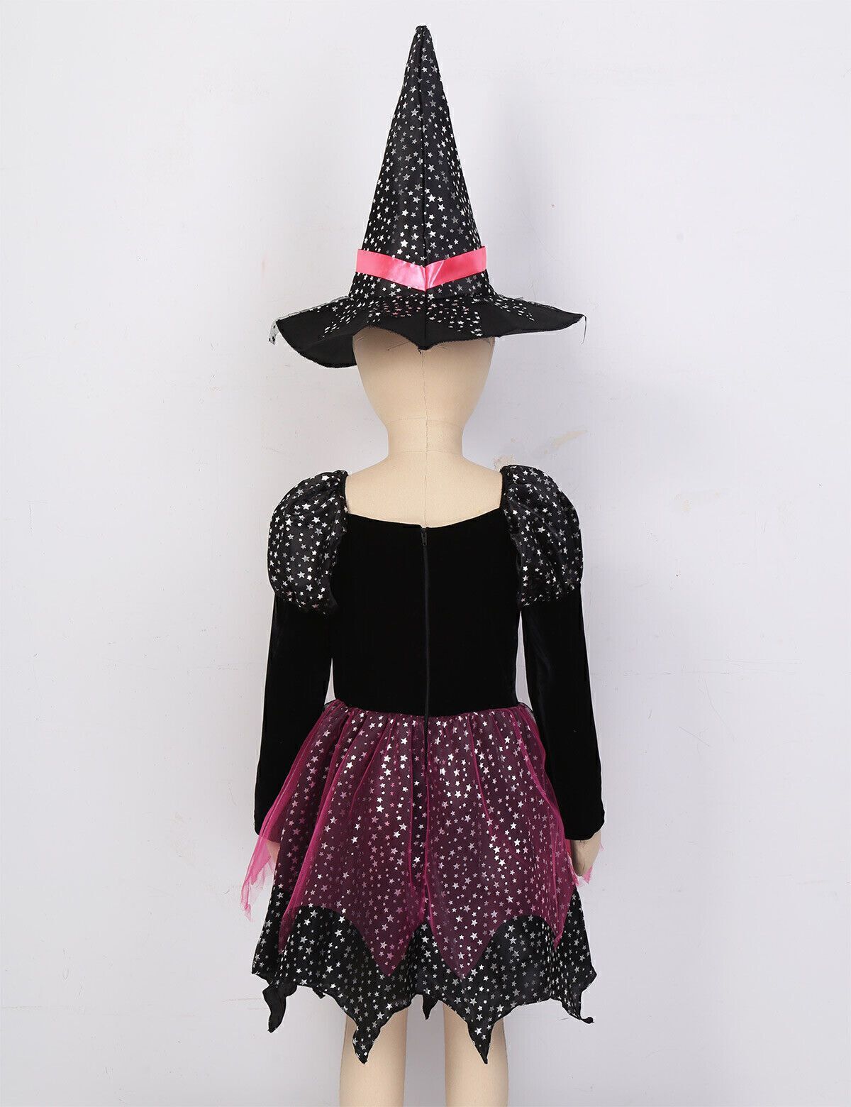 Kinder Madchen Halloween Hexen Kostum Cosplay Glanzend Kleid+Hut + Tasche Outfit