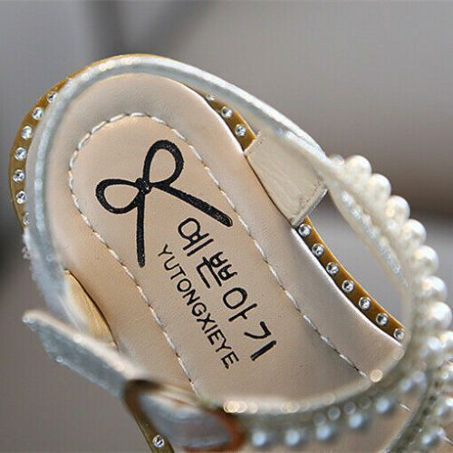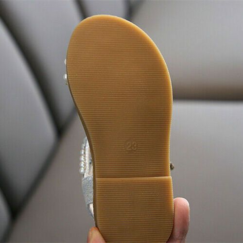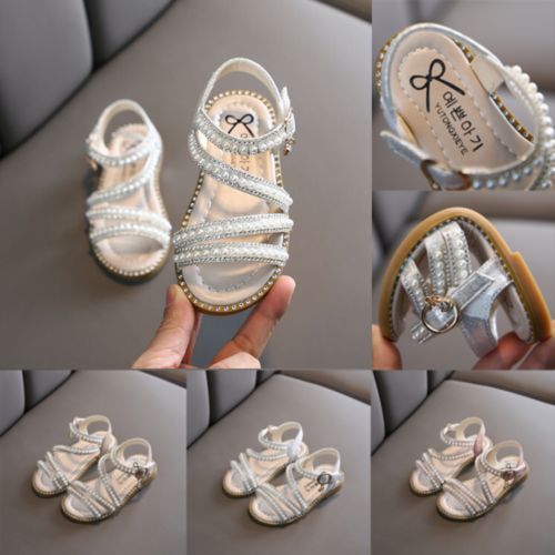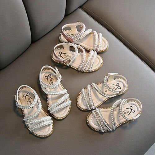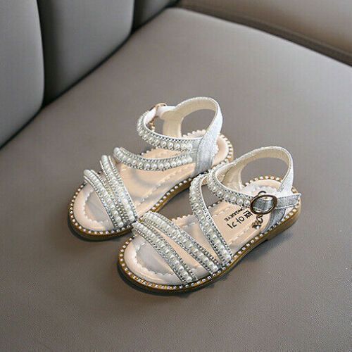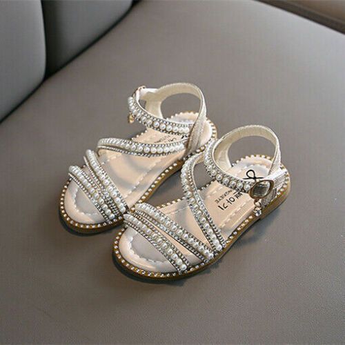 Kinder Madchen Sommer Sandalen Kinder Diamante Pearl Party Strappy Flat Schuhe