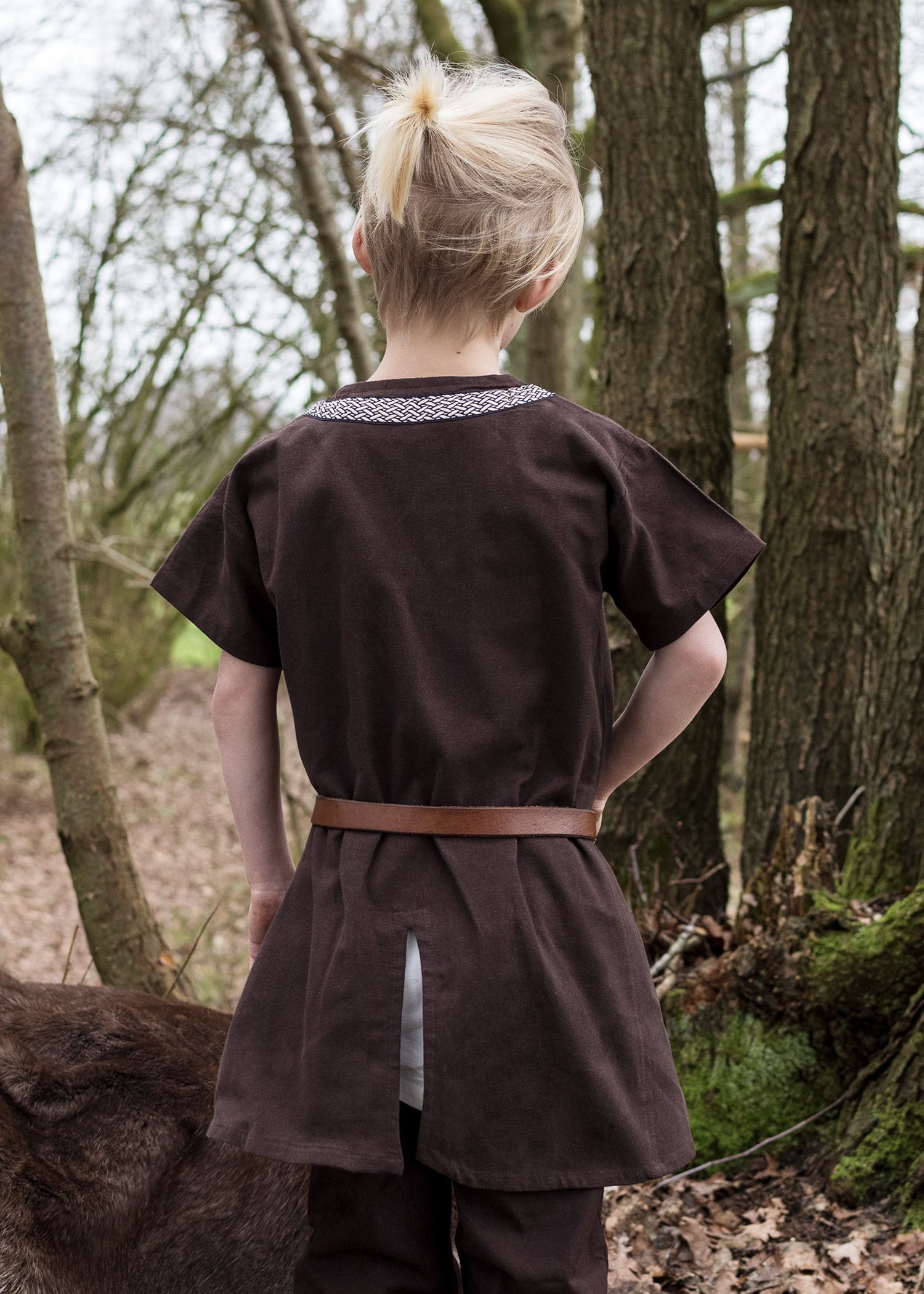 Kinder Mittelalter-Tunika Ailrik mit Bordüre, kurzarm, braun