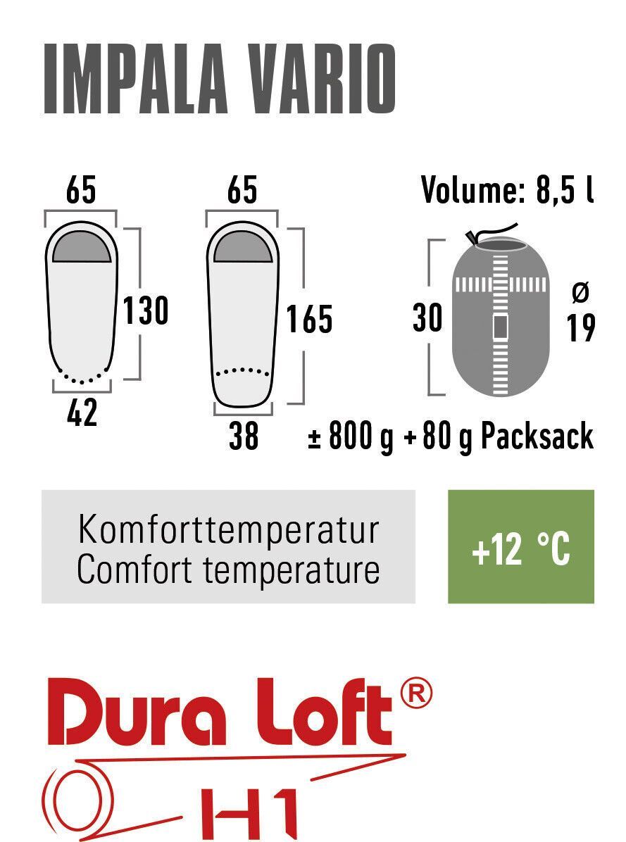 High Peak Kinder Mumienschlafsack Impala verlängerbar 130-165x42-38/65 cm bis + 12°C 800 g