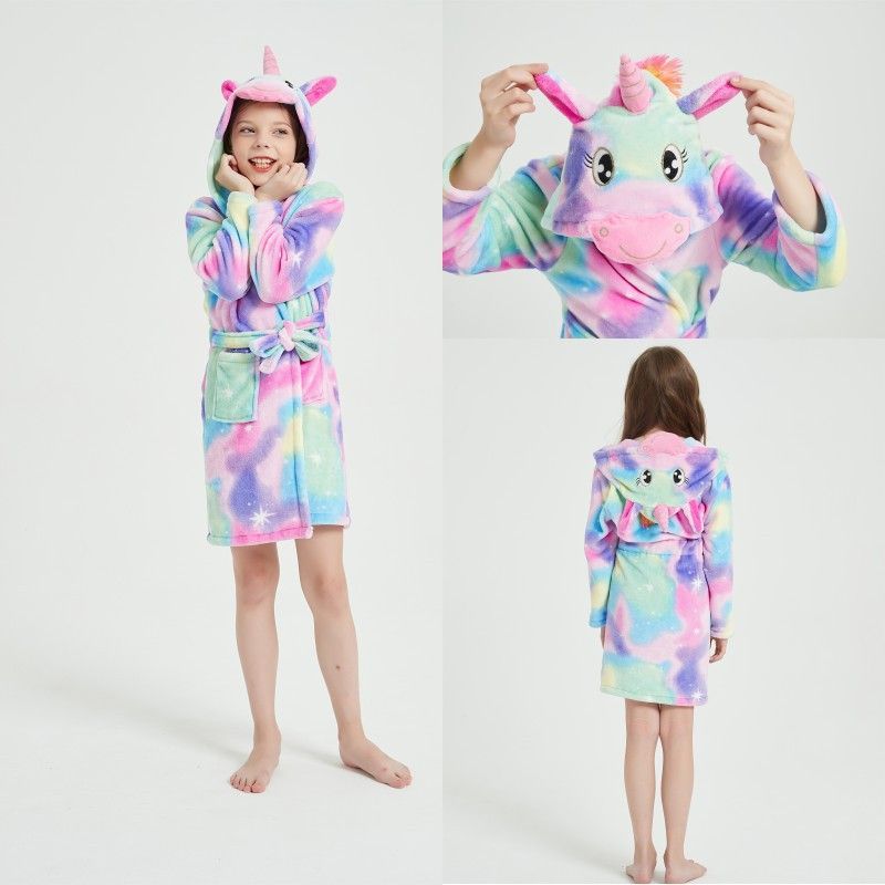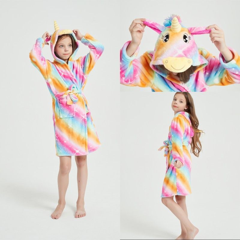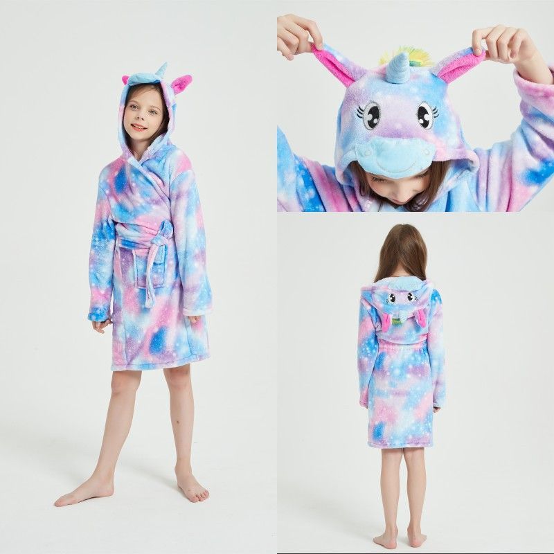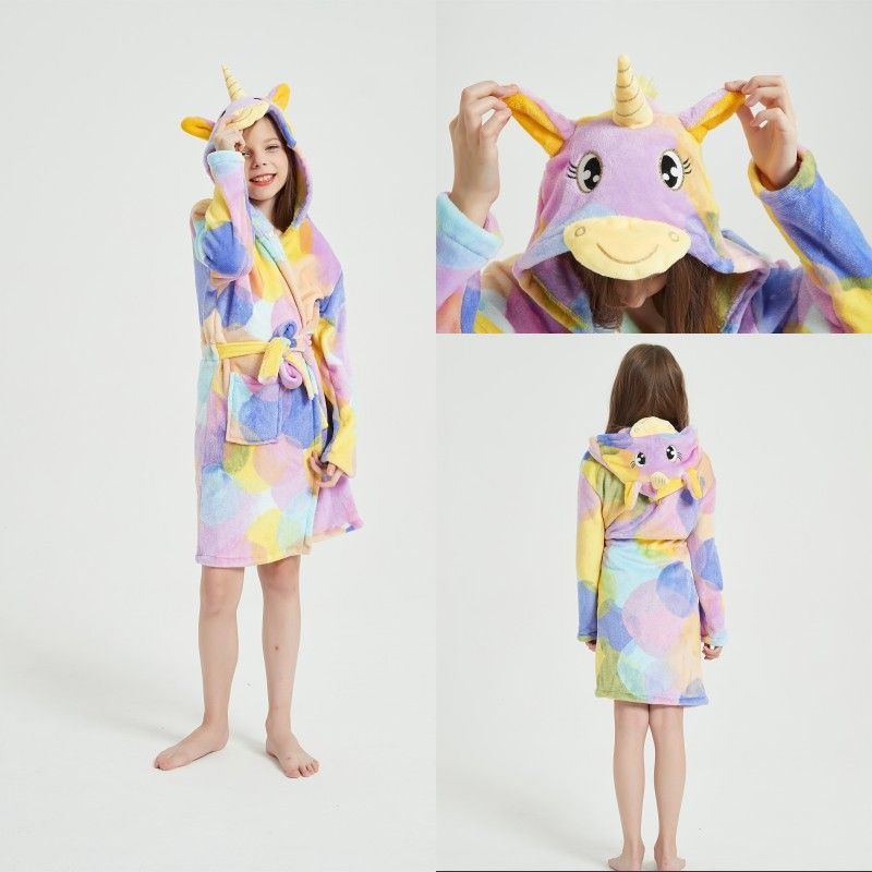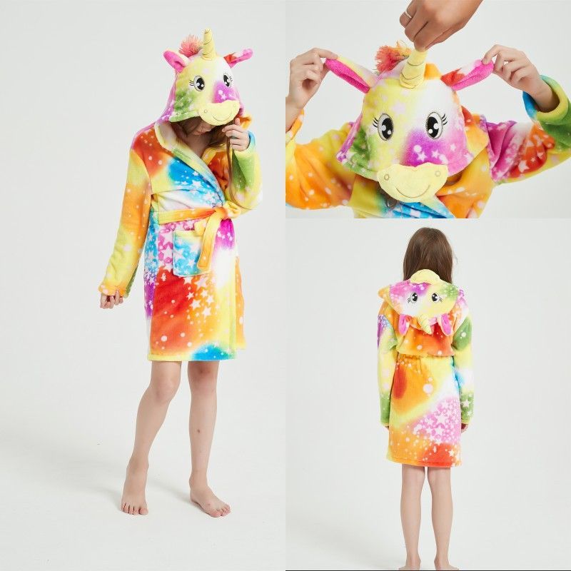 Kinder Nachthemd Unicorn Fuchs Pyjamas Tier Jumpsuit Flanell Bademäntel Schlafmantel