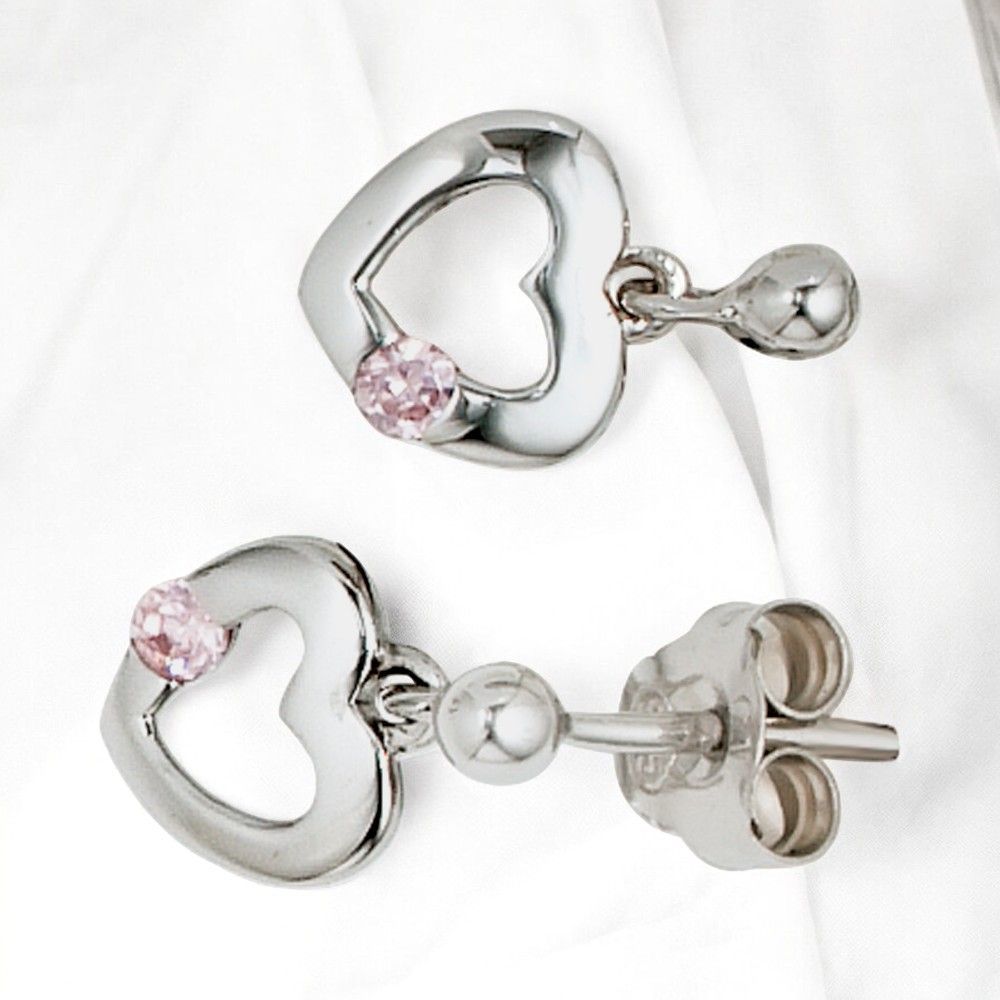 JOBO Kinder Ohrhänger Herz 925 Silber 2 Zirkonia rosa rosé Ohrstecker Ohrringe