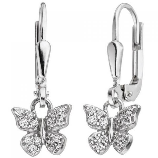 JOBO Kinder Ohrhänger Schmetterling 925 Silber mit Zirkonia Kinderohrringe