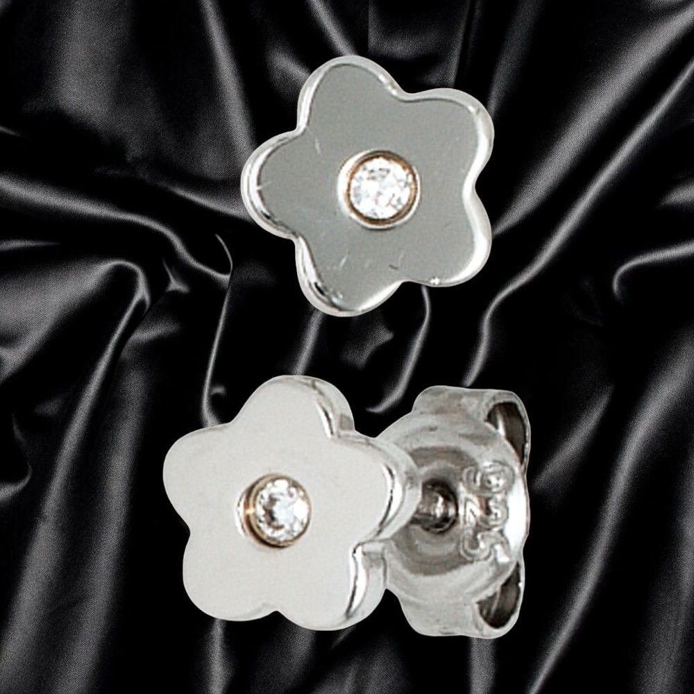 JOBO Kinder Ohrstecker Blume Blumen 925 Silber 2 Zirkonia Ohrringe Kinderohrringe