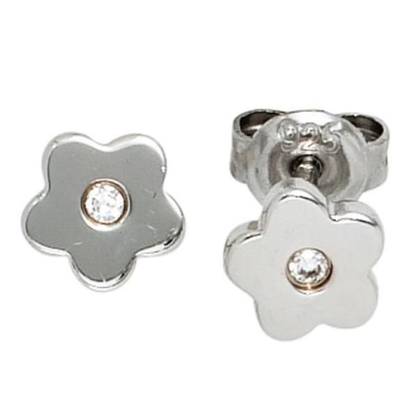 JOBO Kinder Ohrstecker Blume Blumen 925 Silber 2 Zirkonia Ohrringe Kinderohrringe