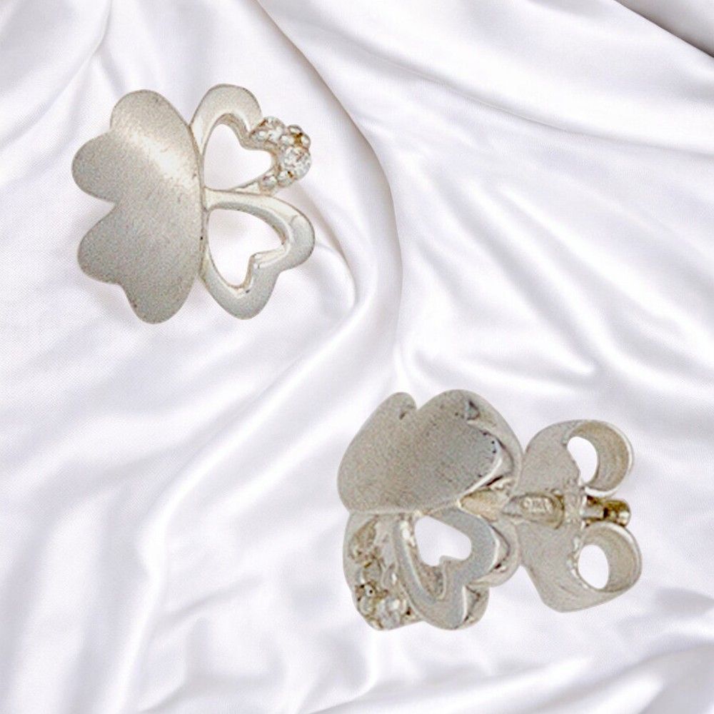 JOBO Kinder Ohrstecker Kleeblatt 925 Silber mattiert mit Zirkonia Ohrringe