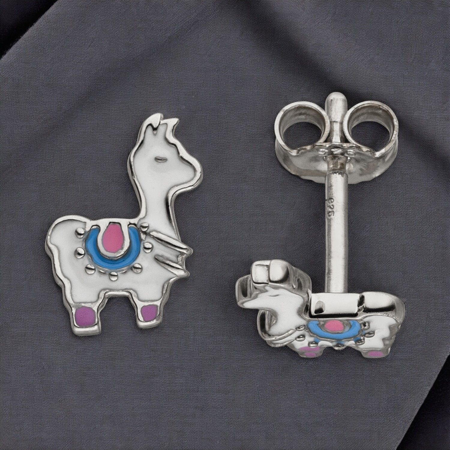 JOBO Kinder Ohrstecker Lama weiß 925 Sterling Silber Ohrringe Kinderohrringe