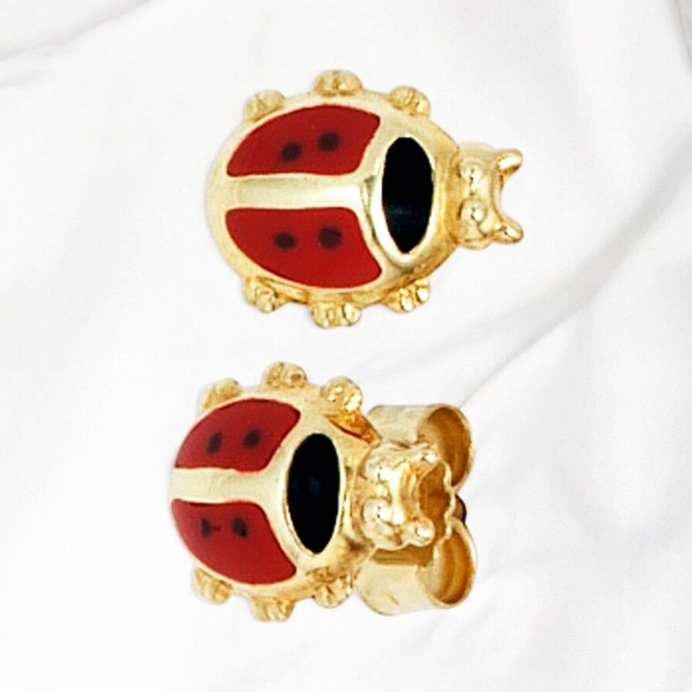 JOBO Kinder Ohrstecker Marienkäfer rot 333 Gold Gelbgold Ohrringe Kinderohrringe