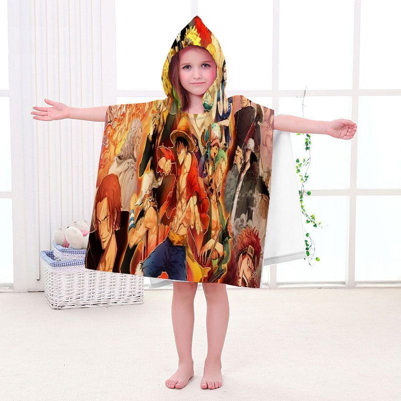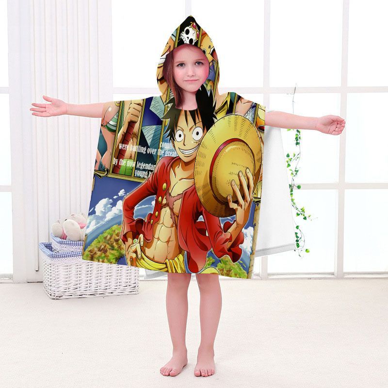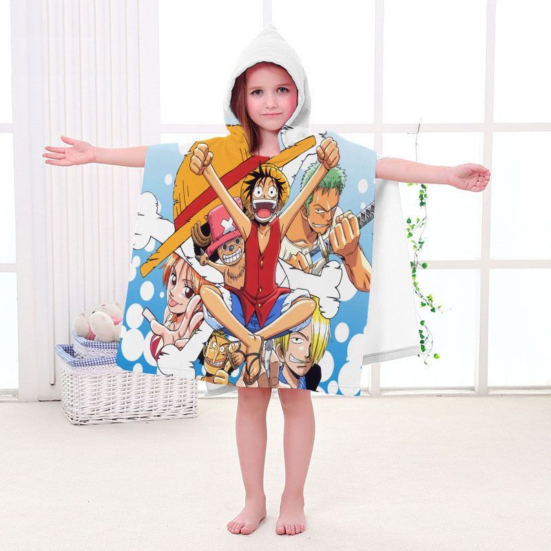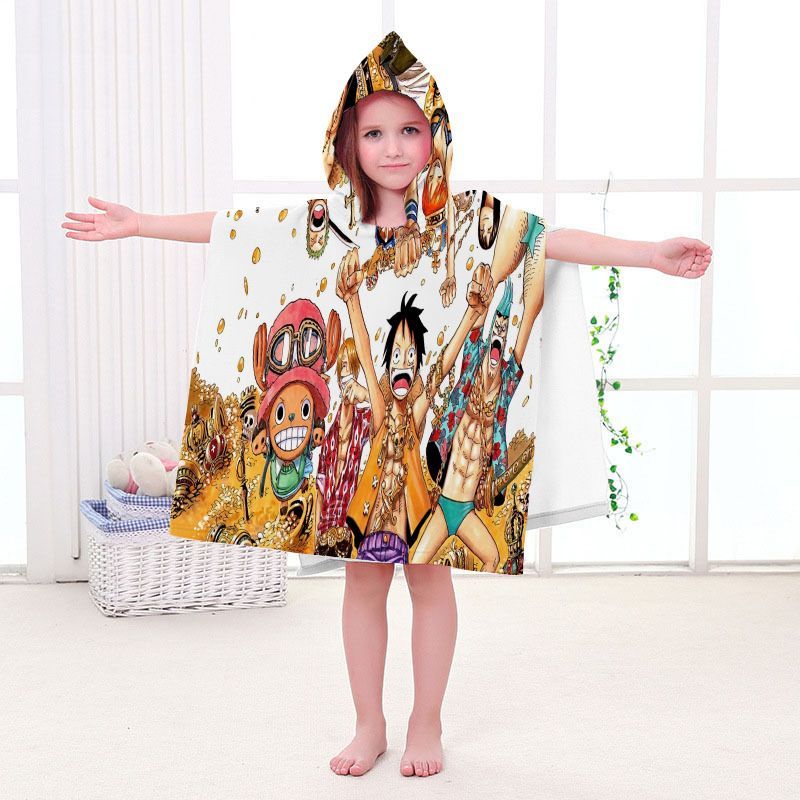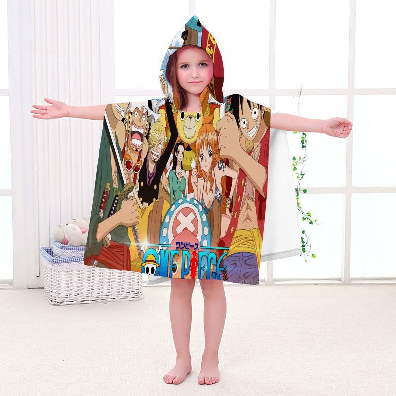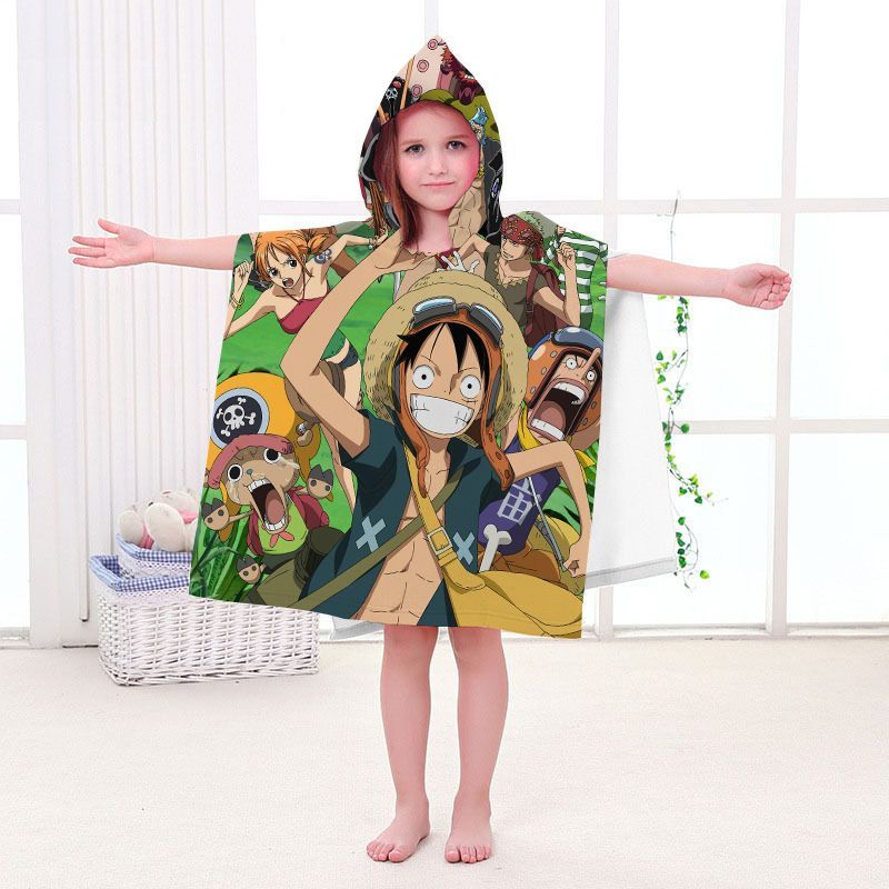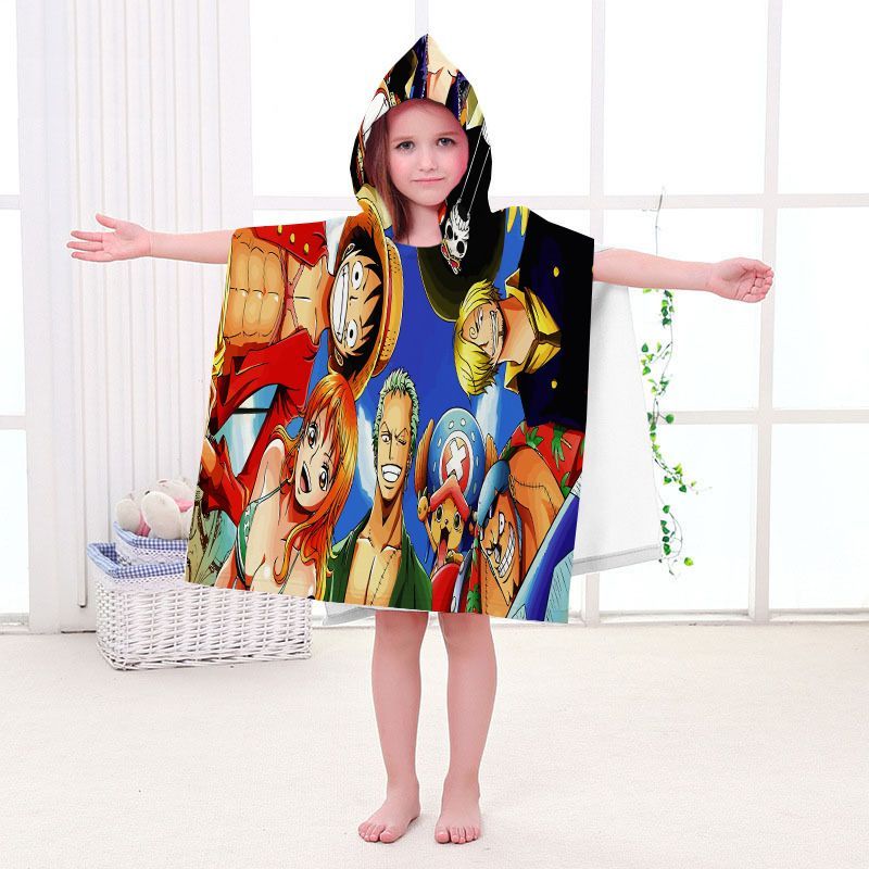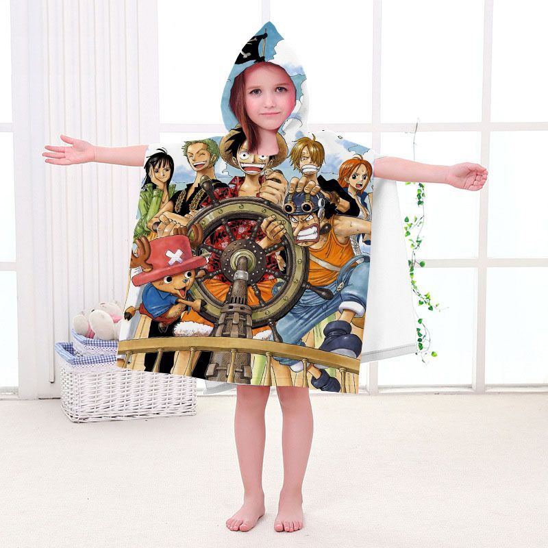 Kinder One Piece Badetuch Luffy Zoro Ace Strand Poncho Chopper Pooltücher Bademantel