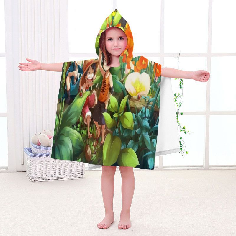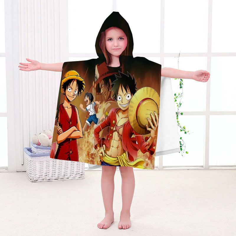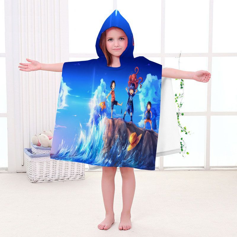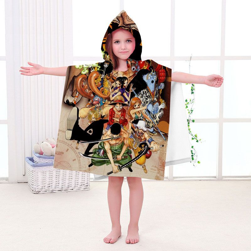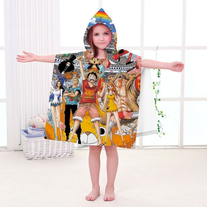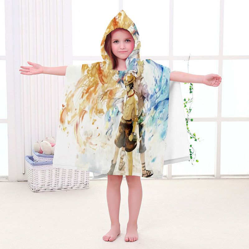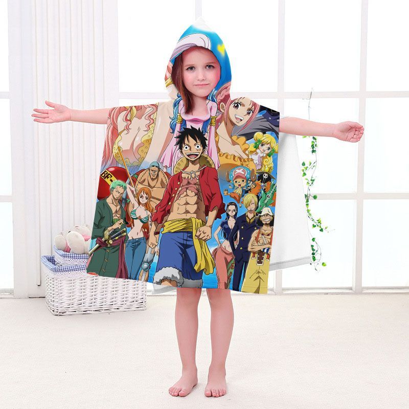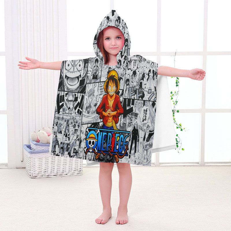 Kinder One Piece Badetuch Luffy Zoro Ace Strand Poncho Chopper Pooltücher Bademantel