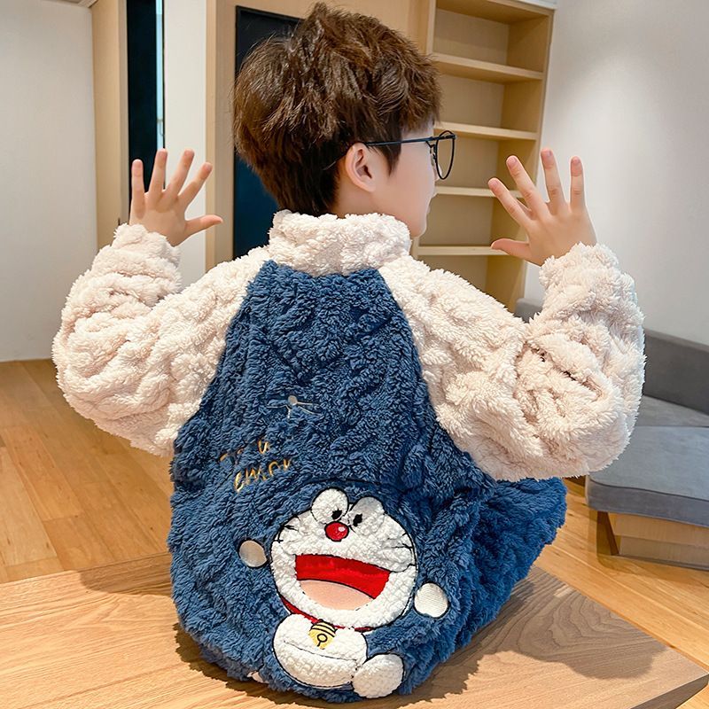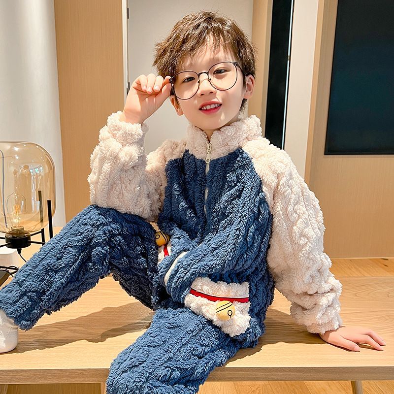 Kinder Pajamas Anime Doraemon Druck Schlafanzug Top Hose Fleece Winter Homewear