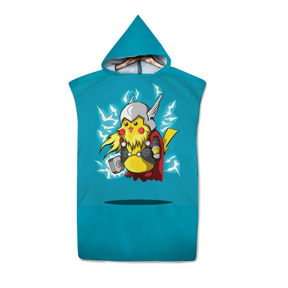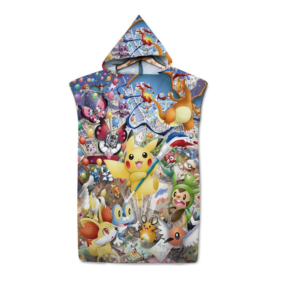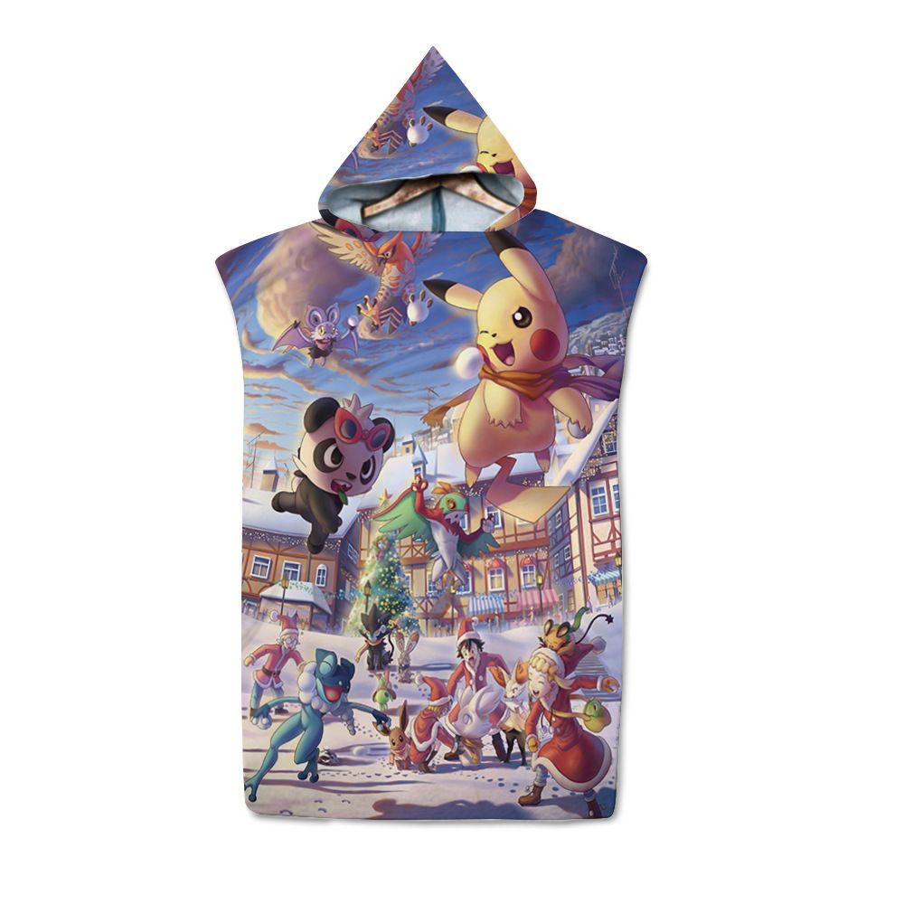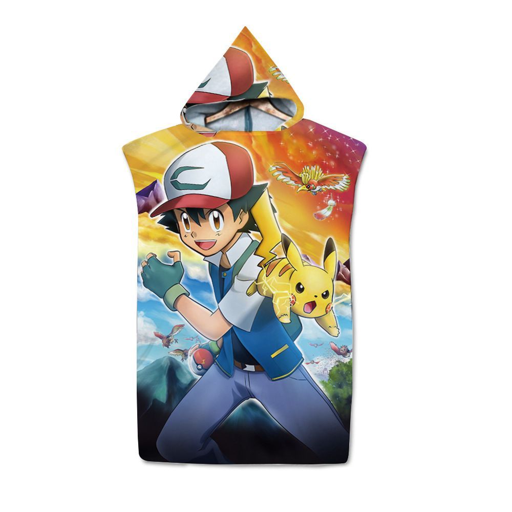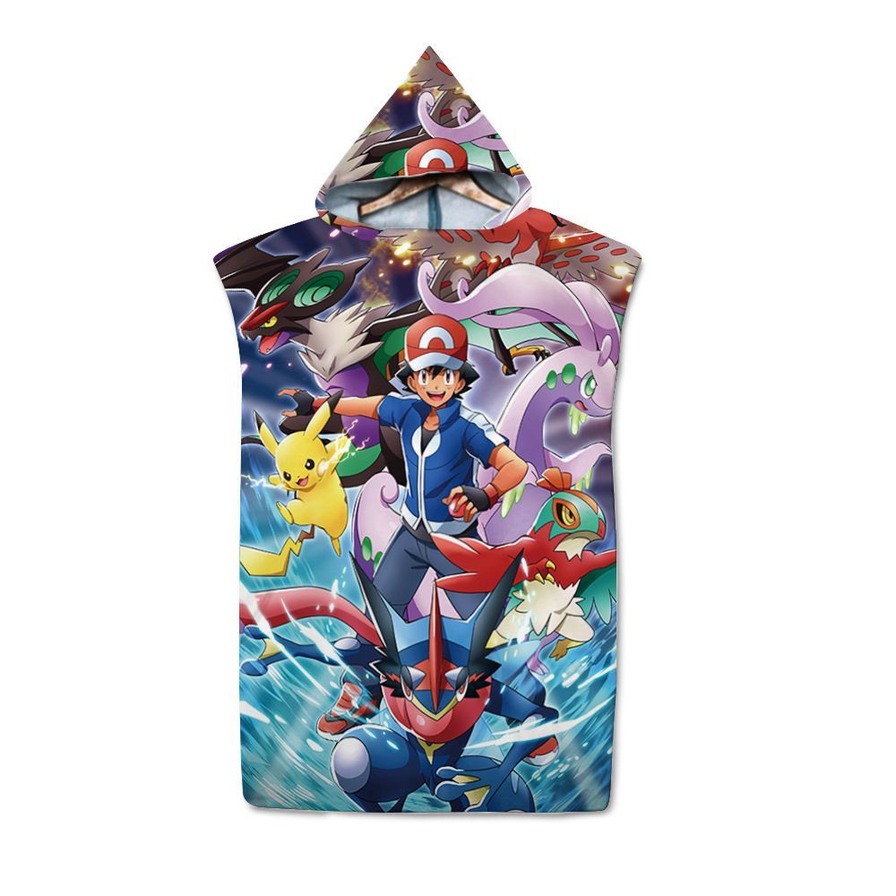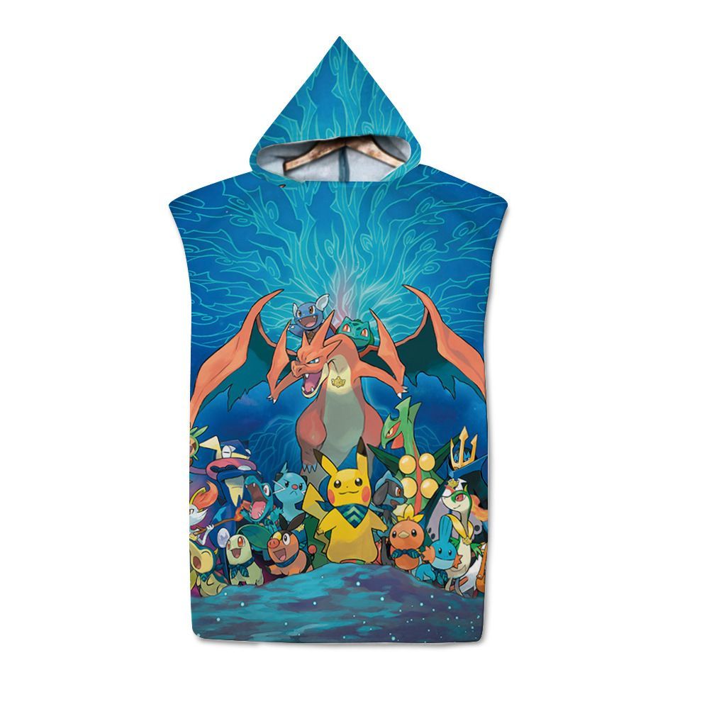 Kinder Poncho Pikachu Strand Poncho Kapuze Pokemon Eevee Pooltücher Umhang Bademode