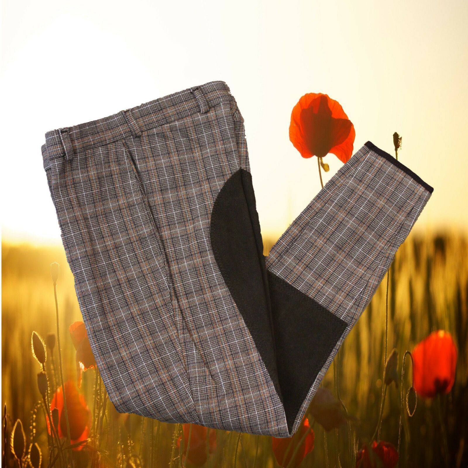 Easy Rider Reithose Nikita in beige-orange · Moderne Kinderreithose · Vollbesatz · Strapazierfähig · Schmutzabweisend · Atmungsaktiv · Karo-Design · Formstabilität · Hohe Bewegungsfreiheit · Bund mit Gürtelschlaufen · eine Reißver