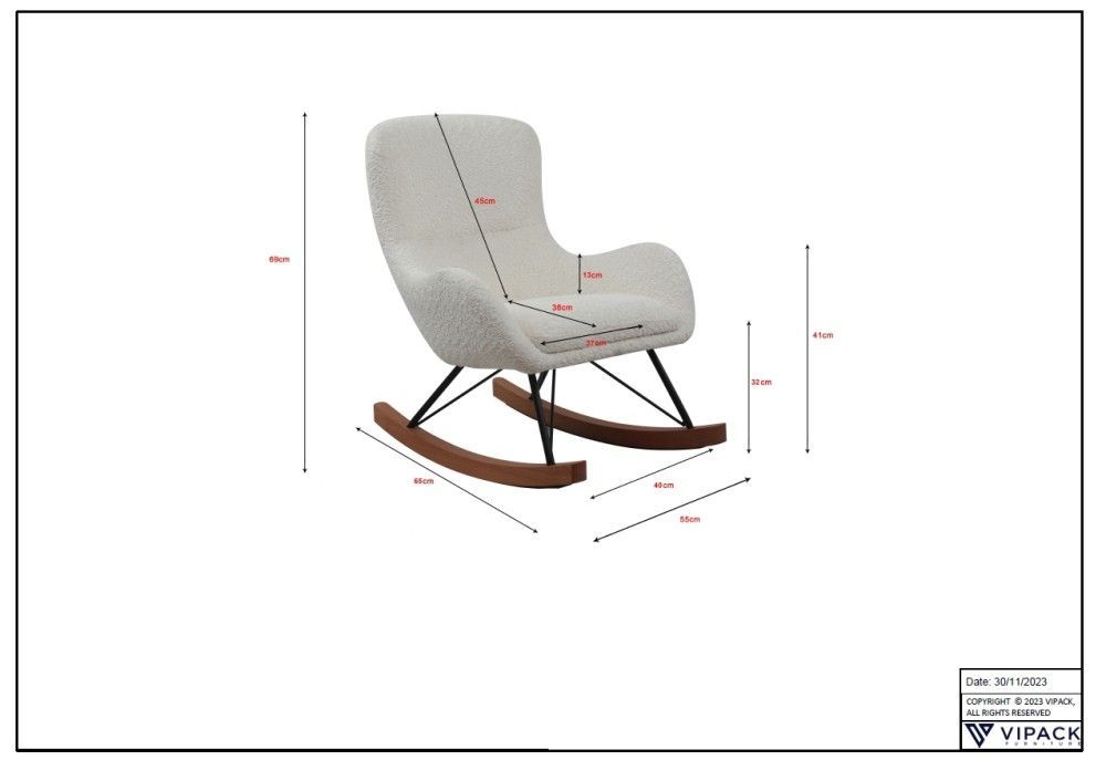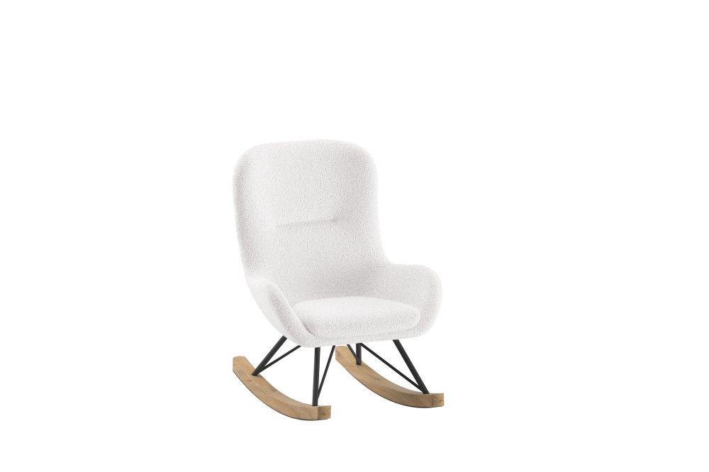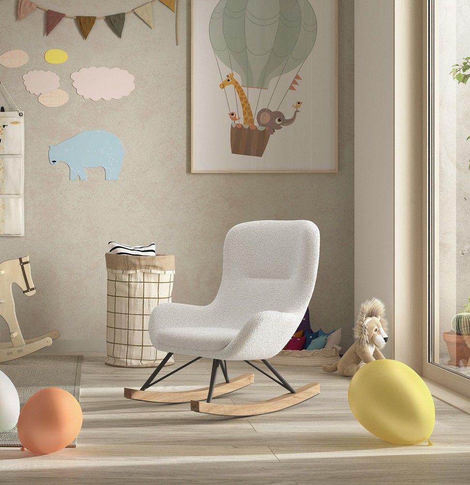 VIPACK Kinder-Schaukelstuhl Massivholzkufen hochwertige Polsterung - Bouclé Creme-Weiß