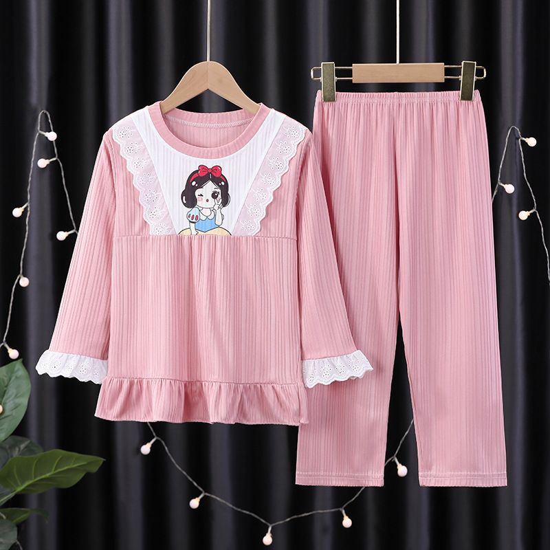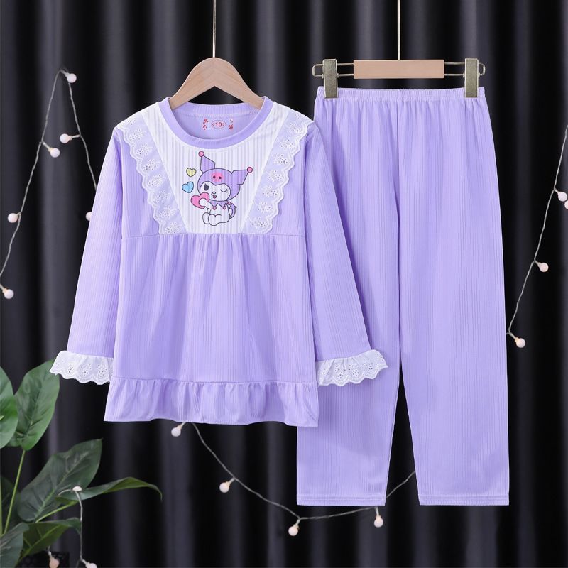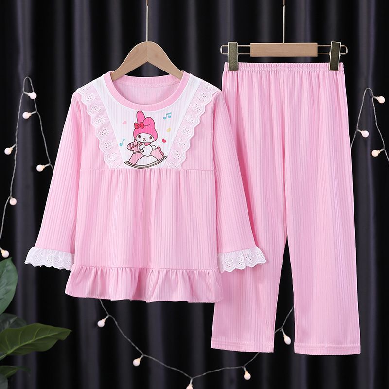 Kinder Schlafanzug Elsa Melody StellaLou Spitzenkante Lang Pyjama 2er Set Loungewear