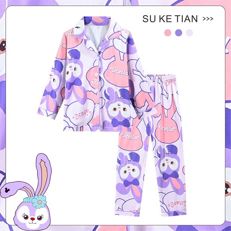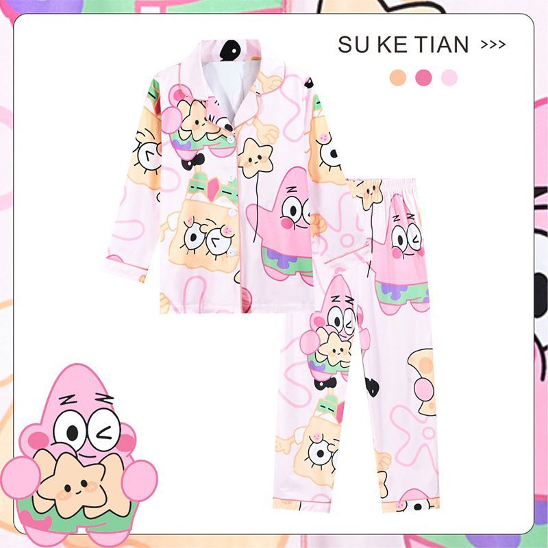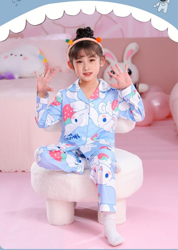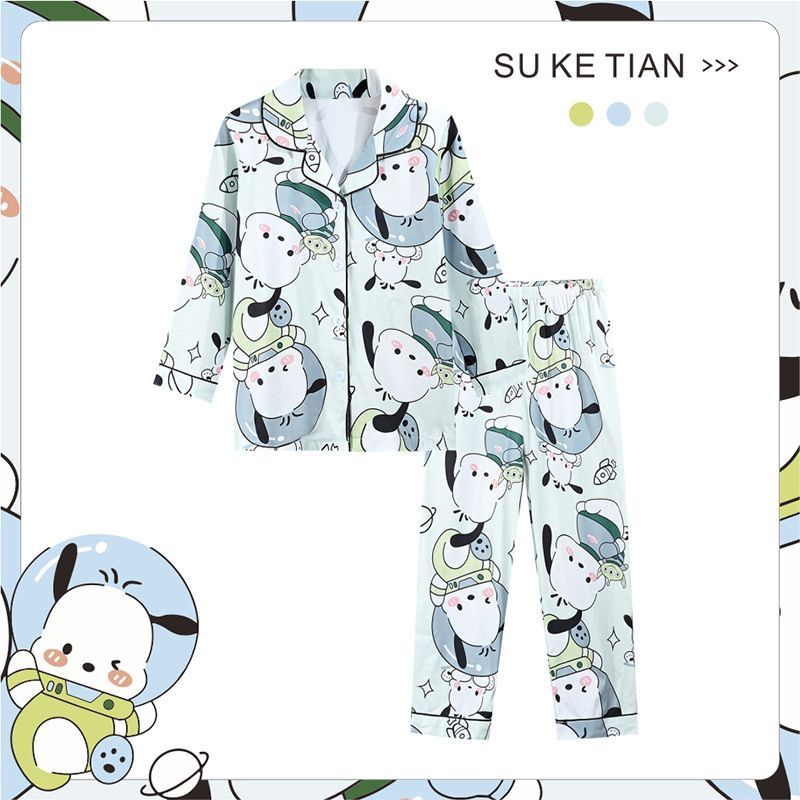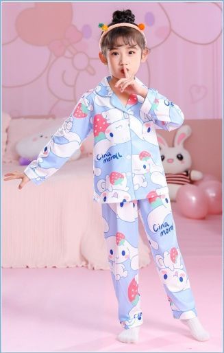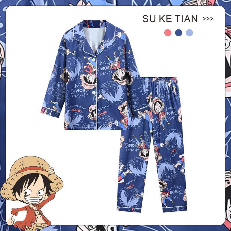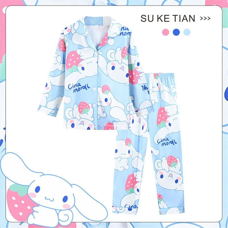 Kinder Schlafanzug Kuromi Pikachu Luffy Revers Knopf Lang Pyjama 2er Set Loungewear