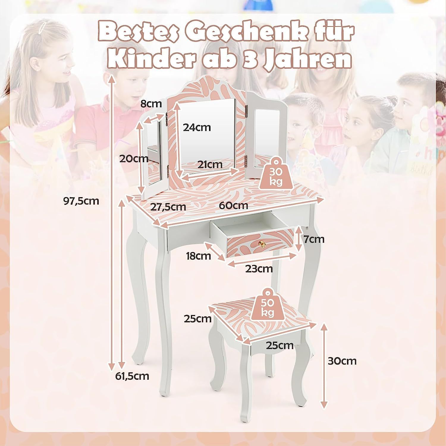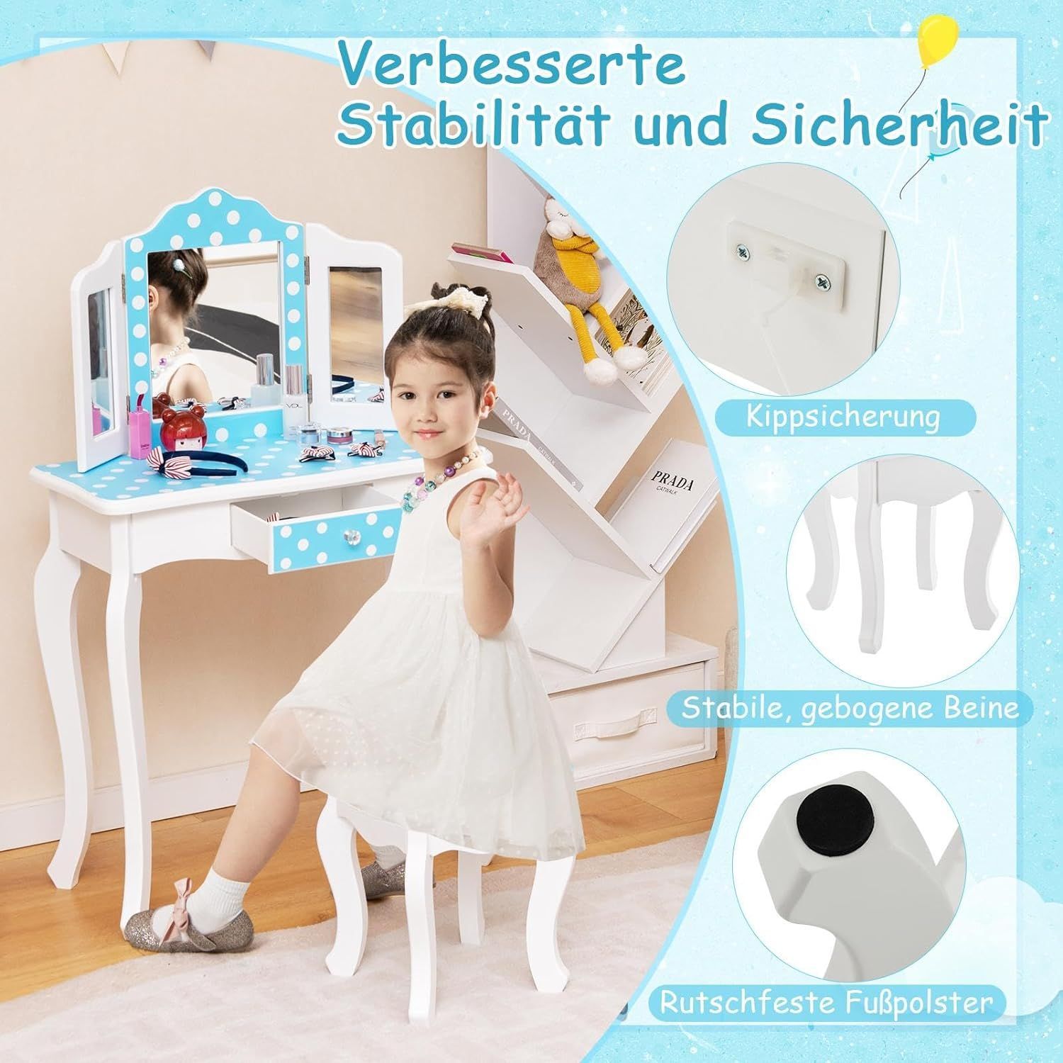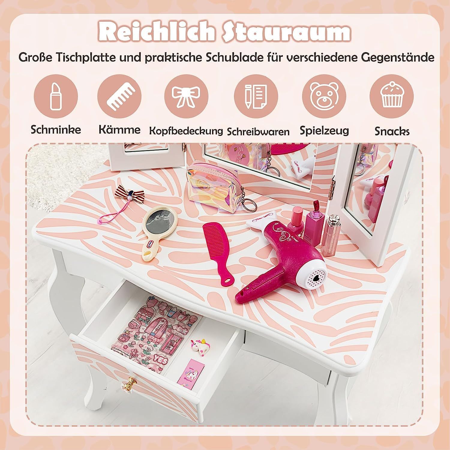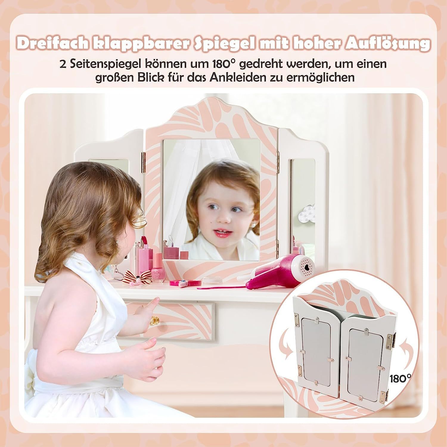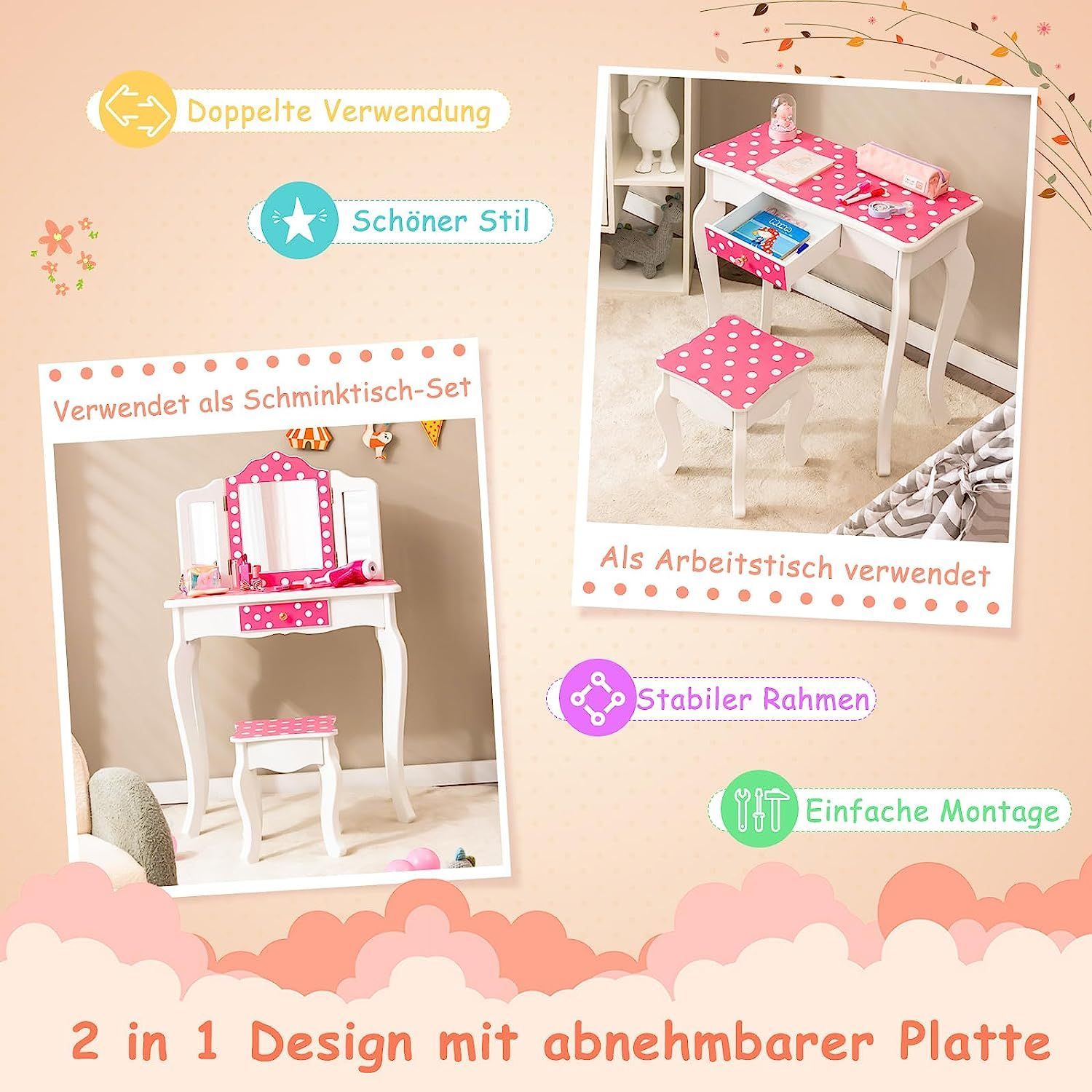 Kinder Schminktisch mit Hocker, 2 IN 1 Frisiertisch Schreibtisch mit Spiegel