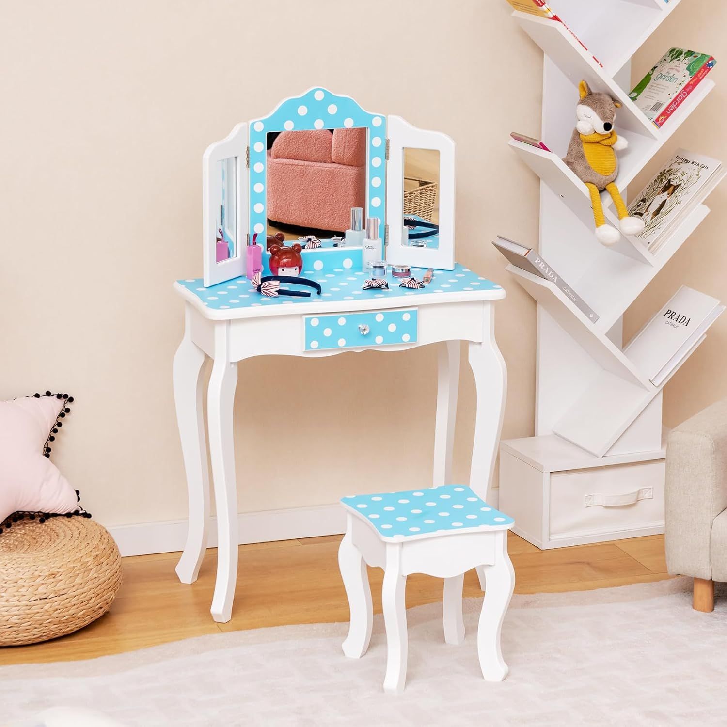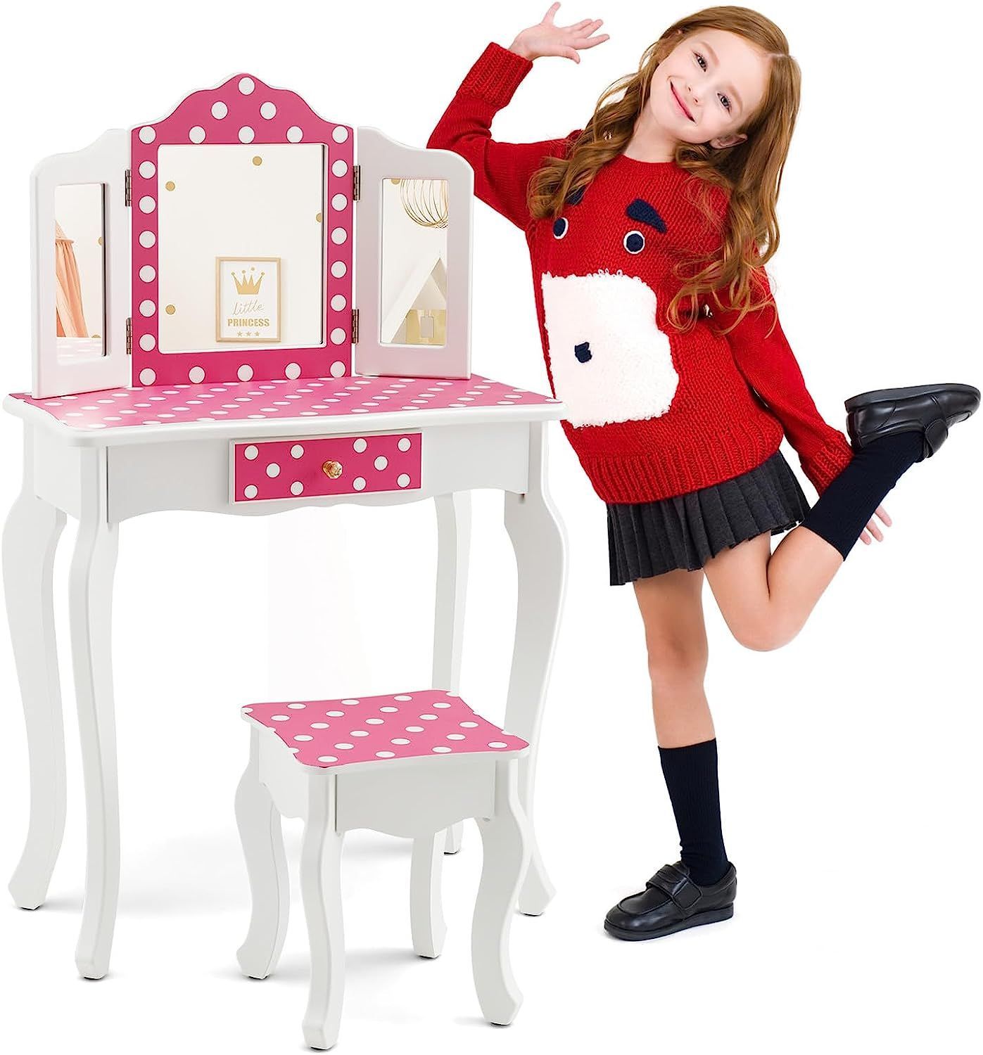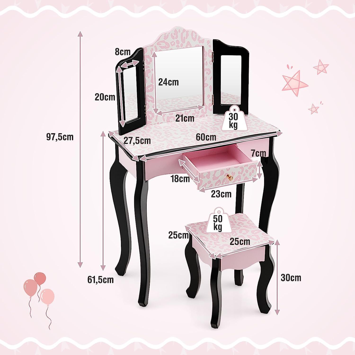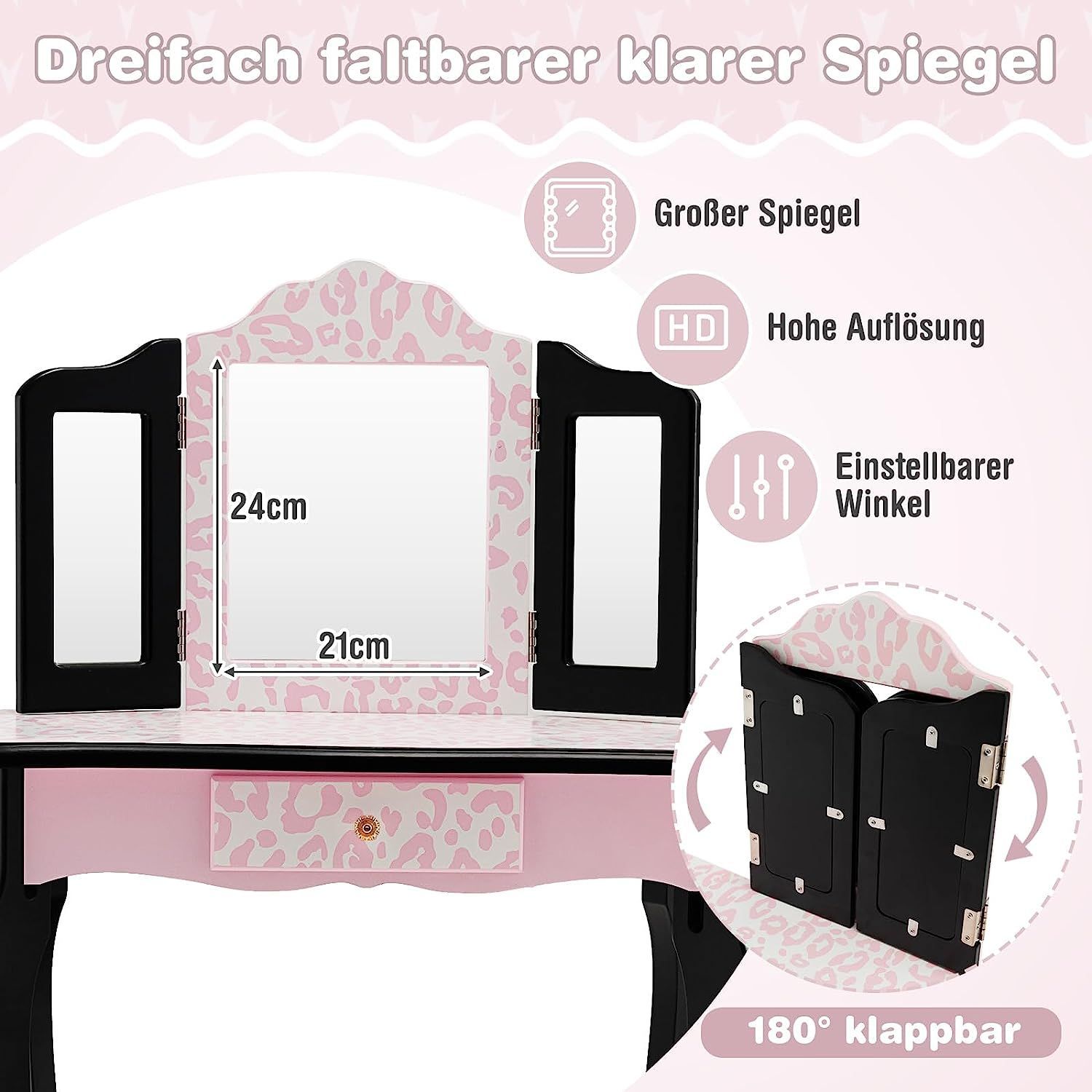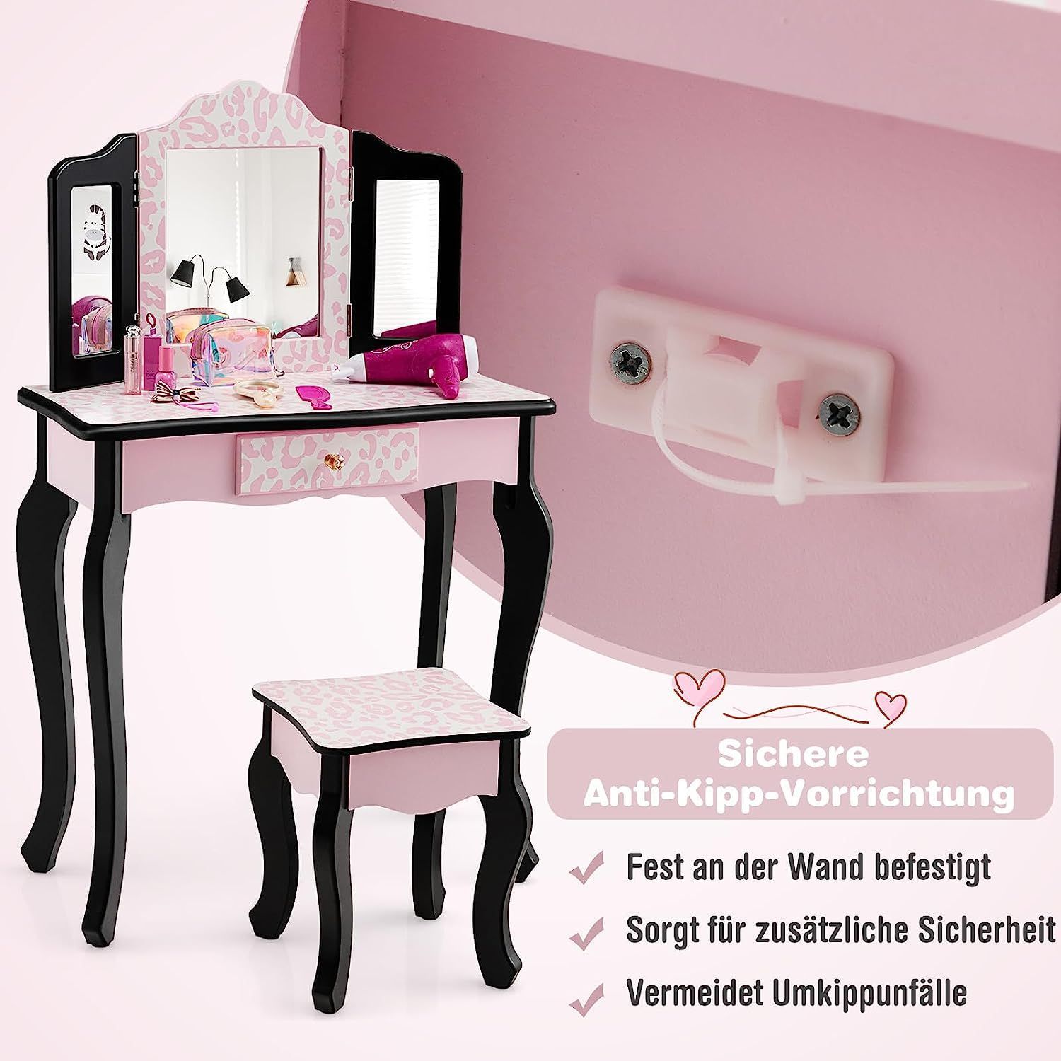 Kinder Schminktisch mit Hocker, 2 IN 1 Frisiertisch Schreibtisch mit Spiegel