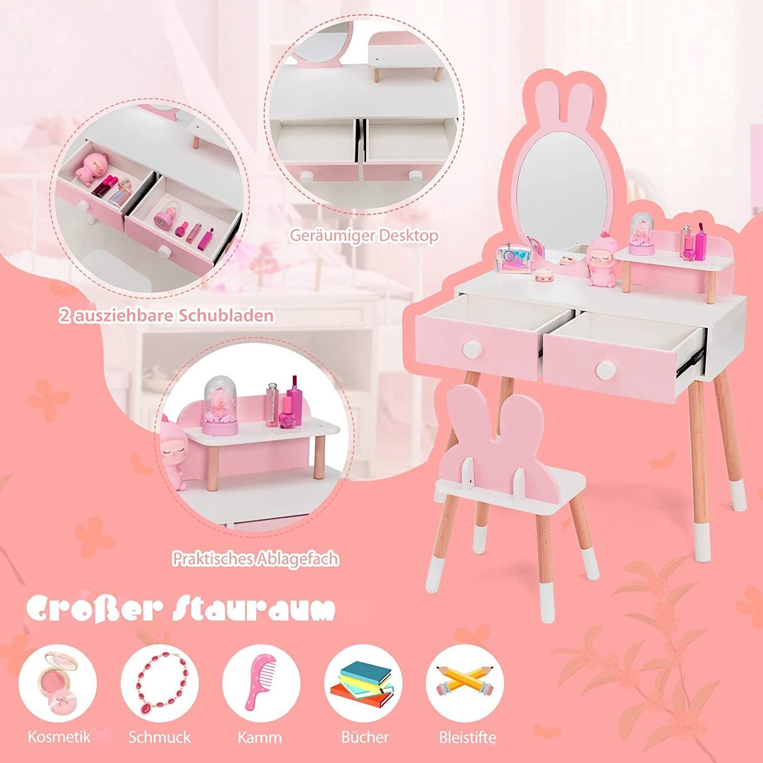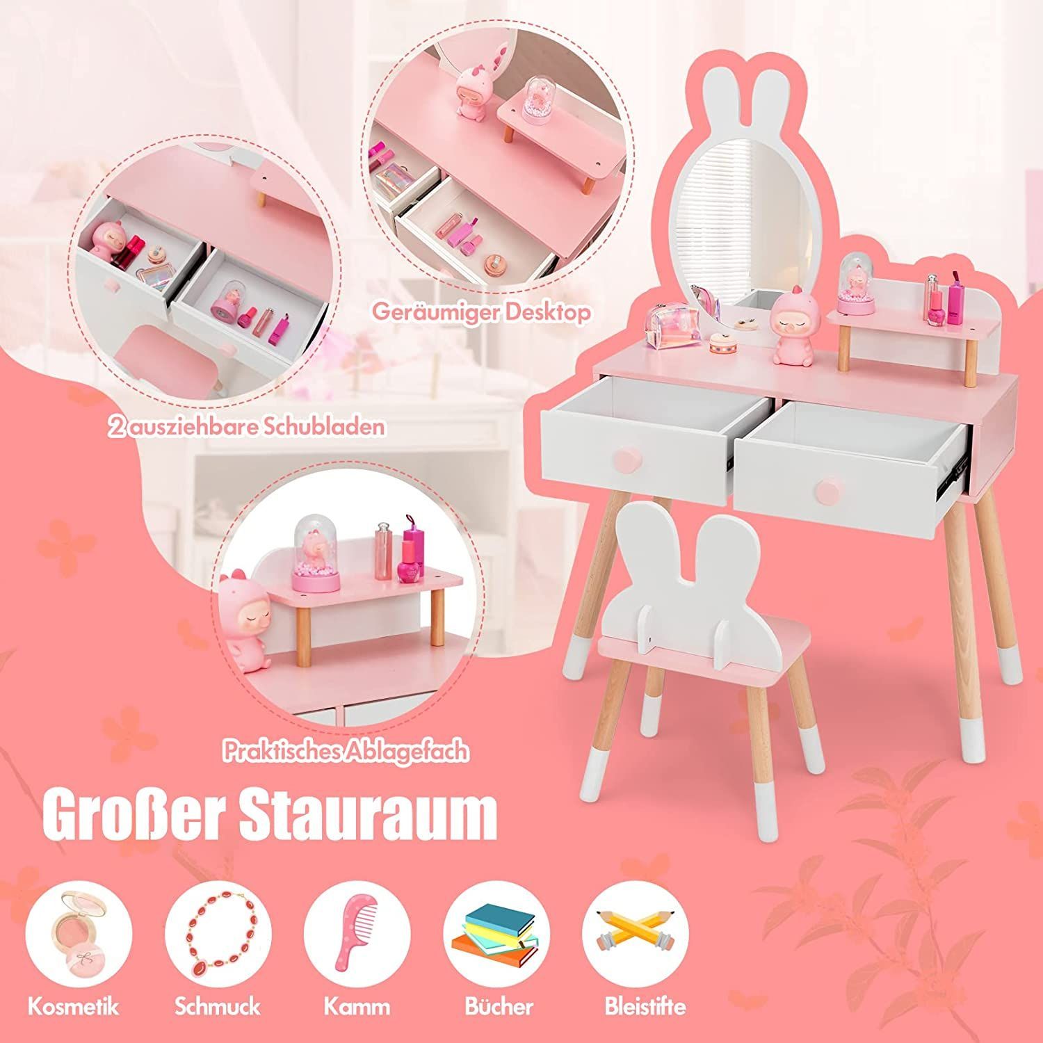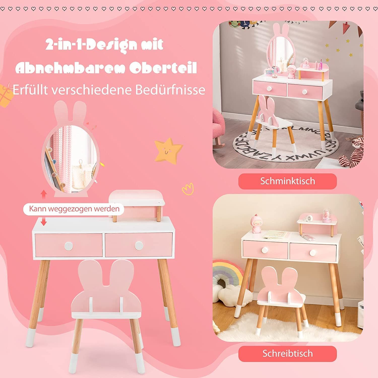 Kinder Schminktisch Set mit Kaninchen Design, 2-in-1-Frisiertisch mit Spiegel