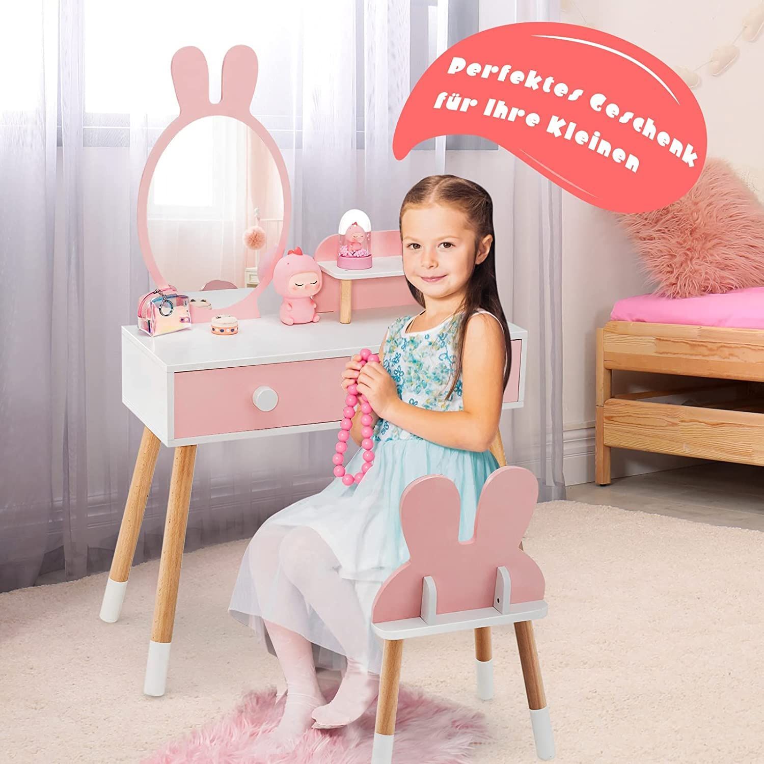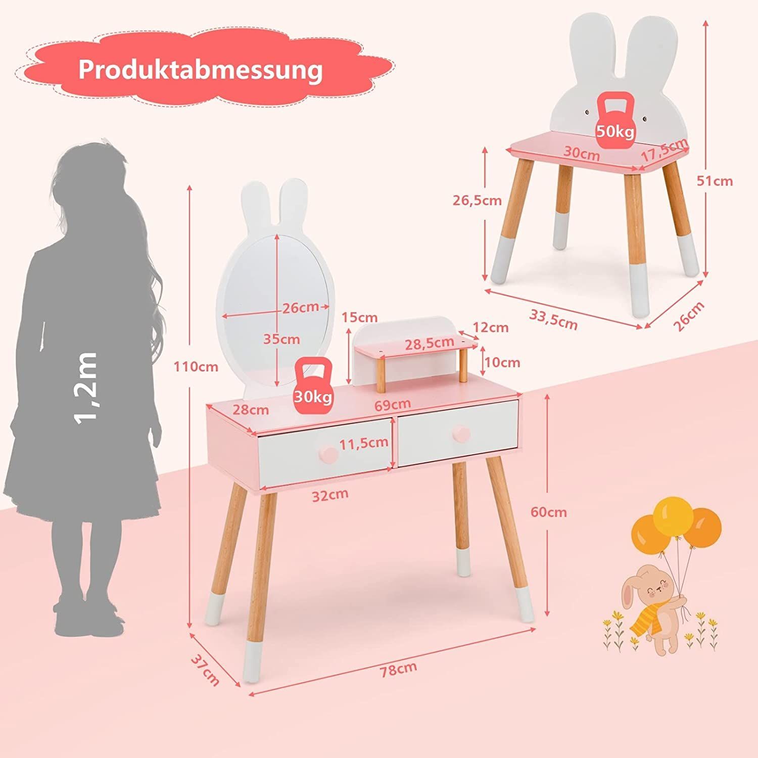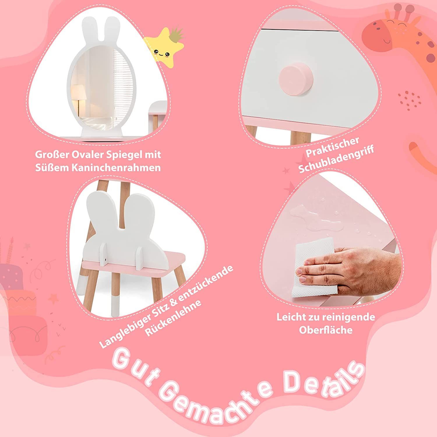 Kinder Schminktisch Set mit Kaninchen Design, 2-in-1-Frisiertisch mit Spiegel