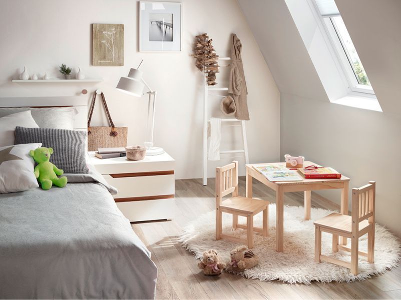 • Kinder Sitzgruppe Kindermöbel Set mit 2x Stuhl und Tisch Holz Kiefer weiß Natur BOMI®