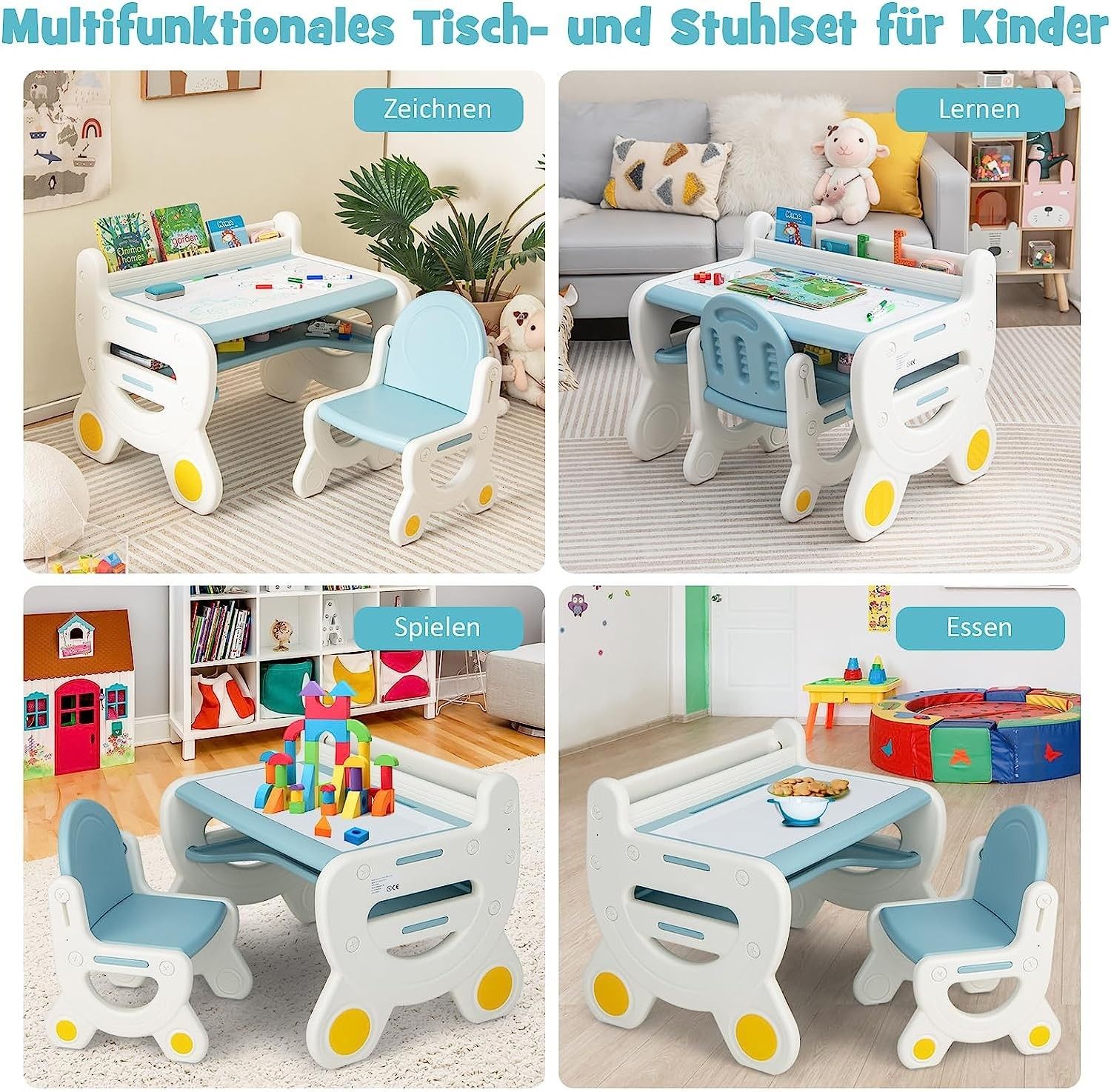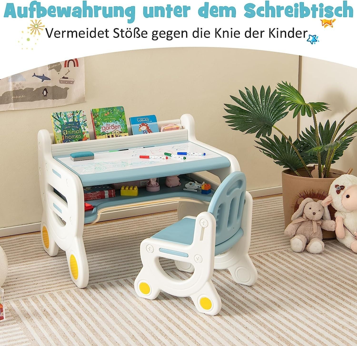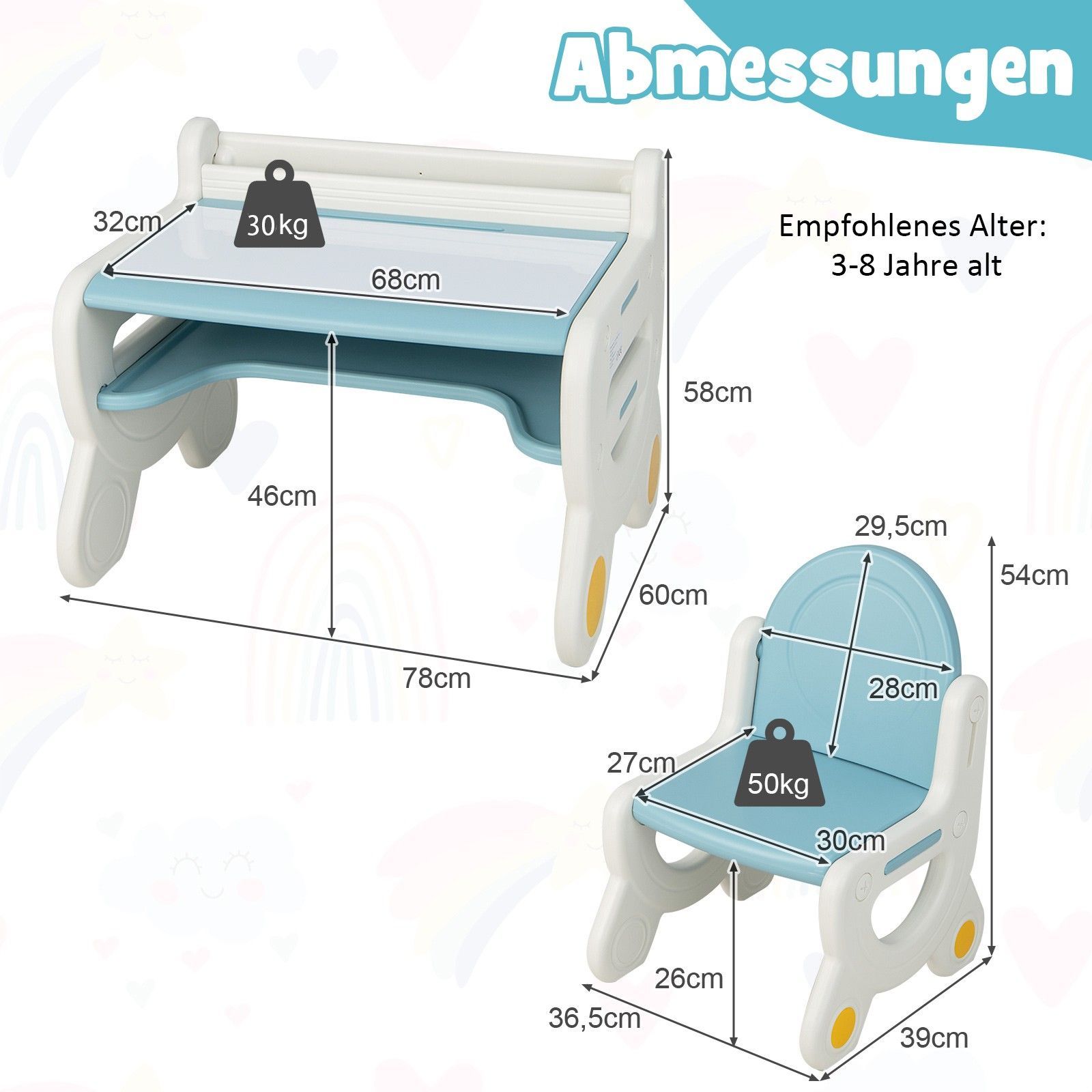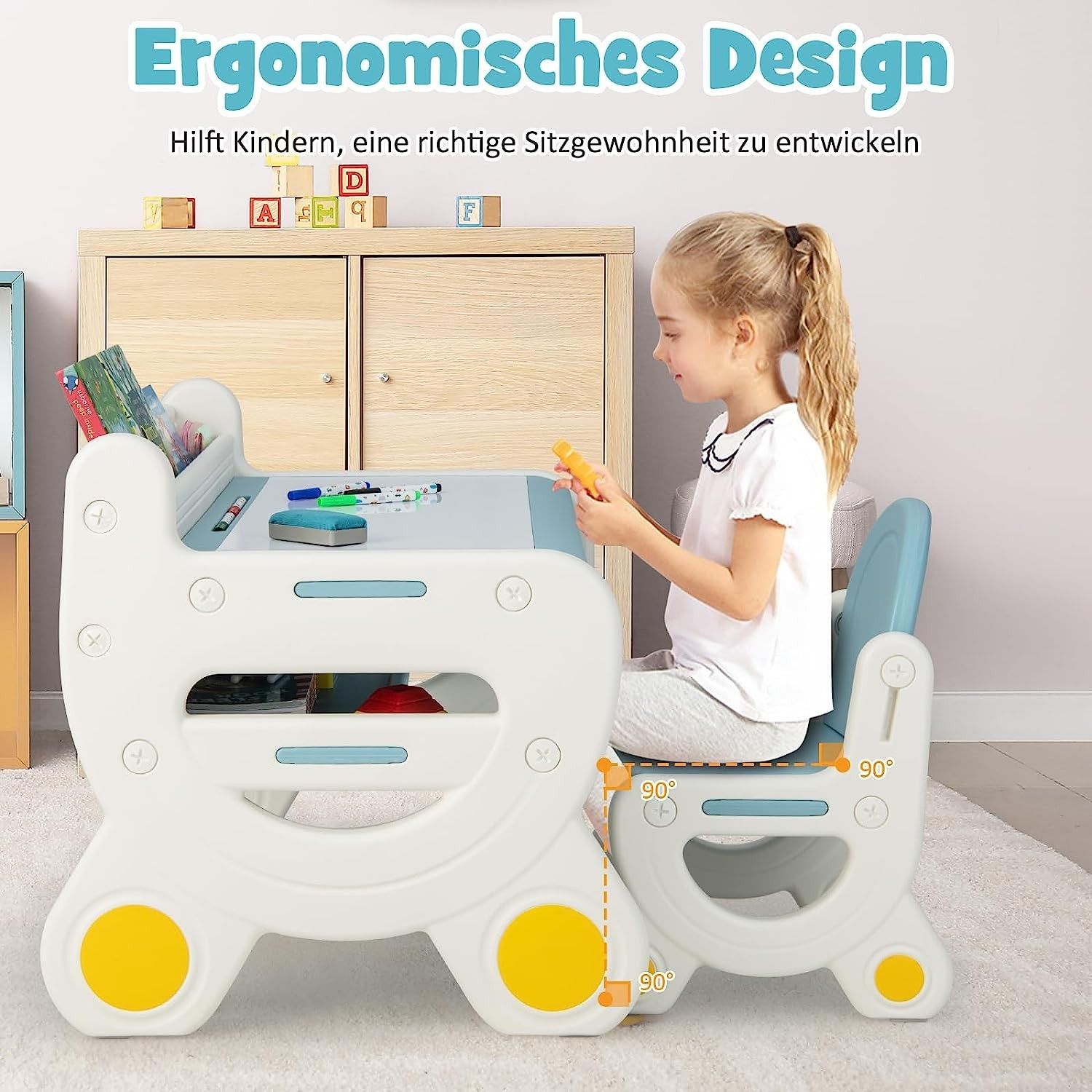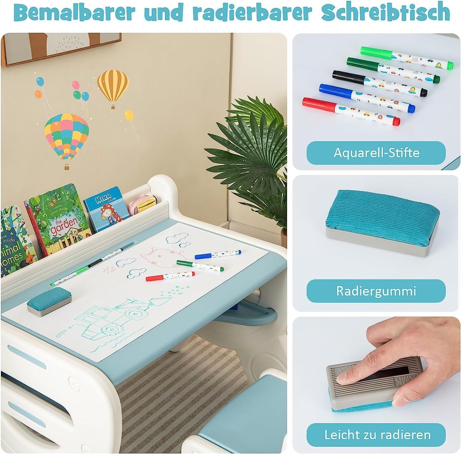 Kinder Sitzgruppe mit höhen- und neigungsverstellbarer Tischplatte, zum Lernen, Blau