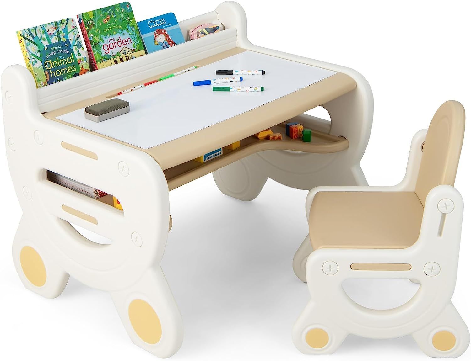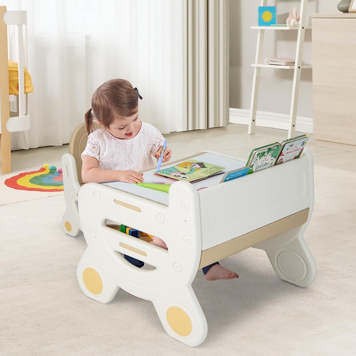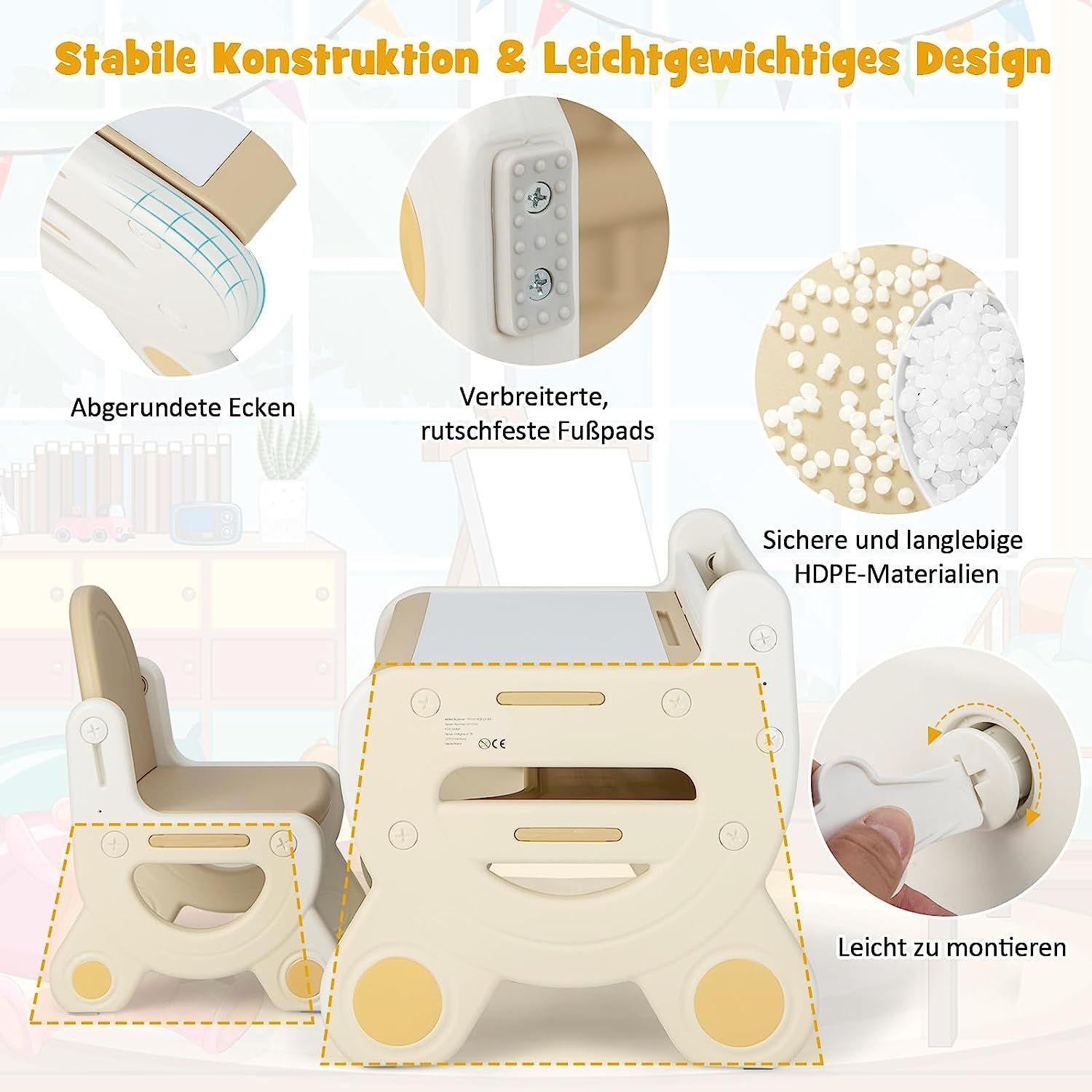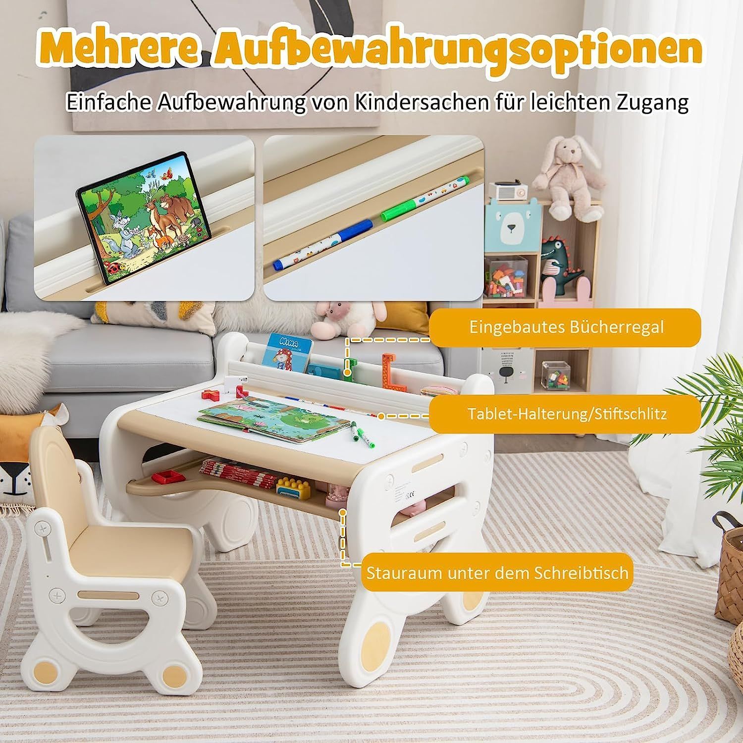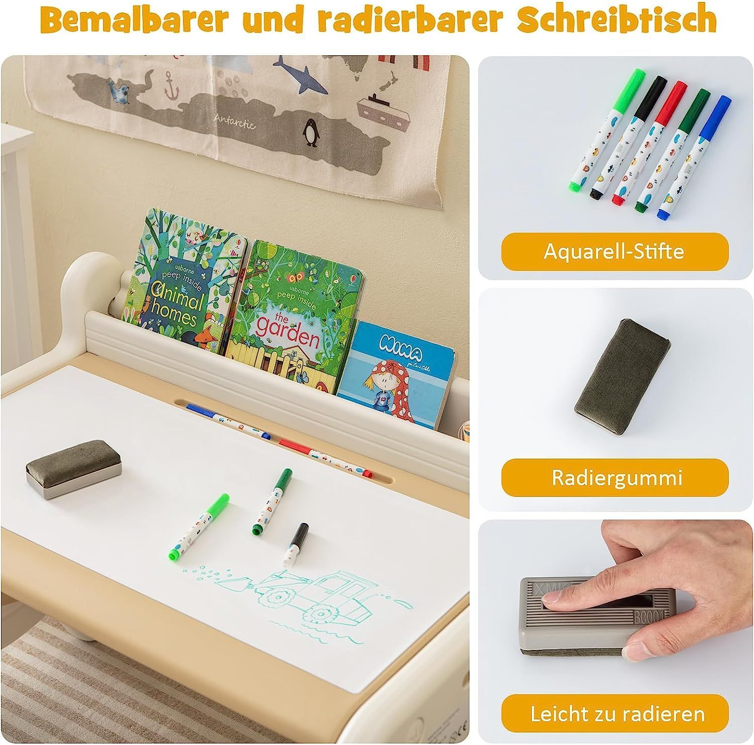Kinder Sitzgruppe mit höhen- und neigungsverstellbarer Tischplatte, zum Lernen, Blau