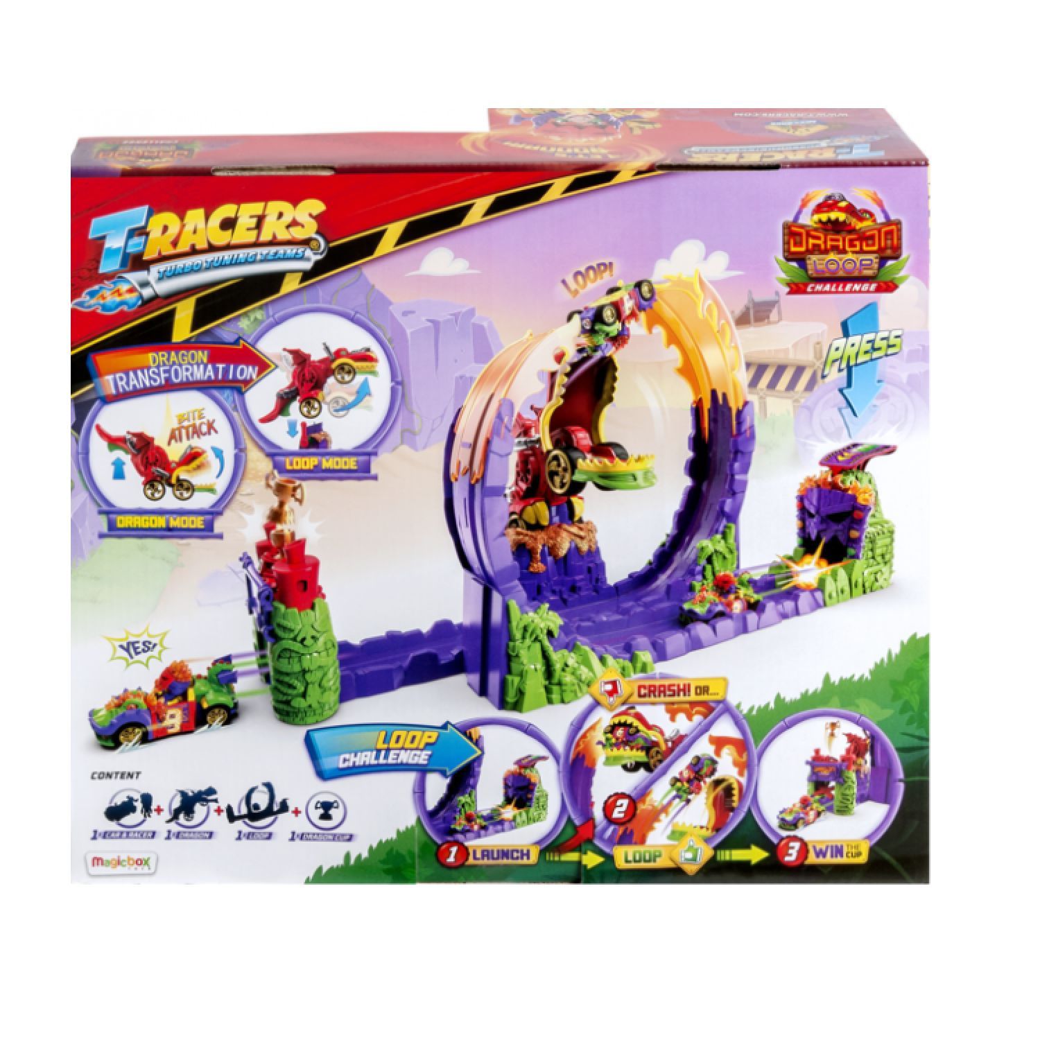 MagicBox Kinder Spielset T-Racers Dragon Loop Dragon Action Figur Tiki Twist Launcher