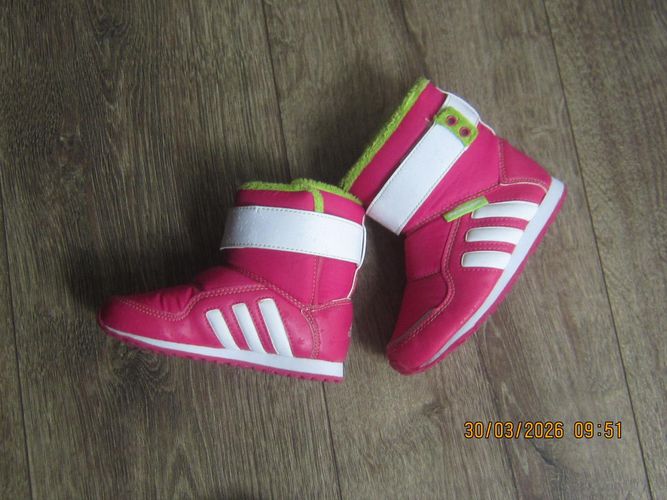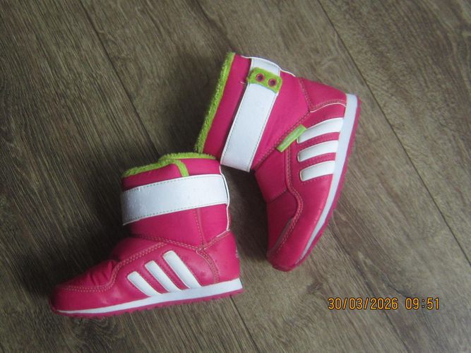der Kinderstiefel ist gr 24 von der Marke Adidas.die Stiefelchen sind getragen aber noch wie neu . Mit Klettverschluss in Pink