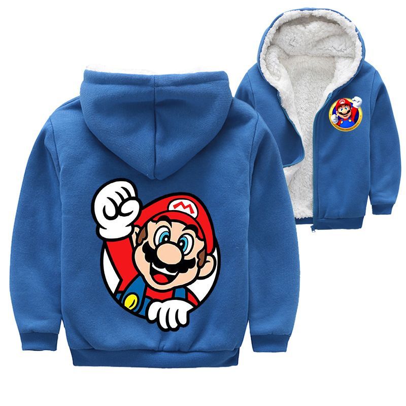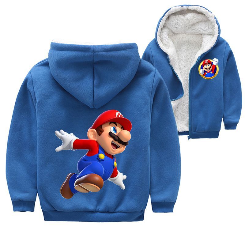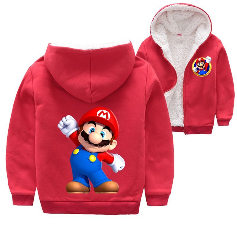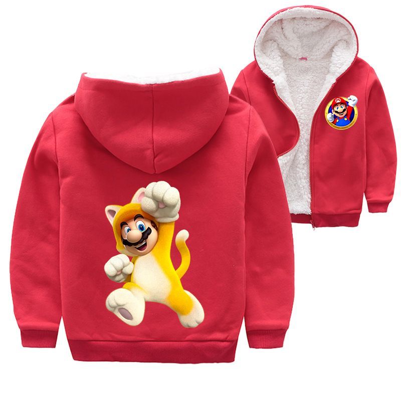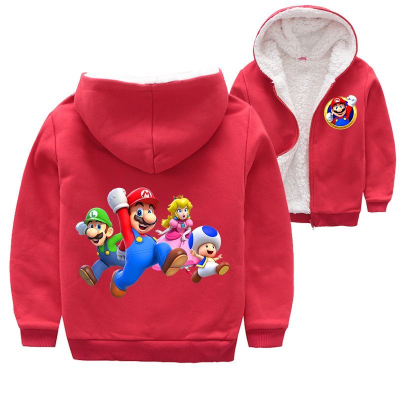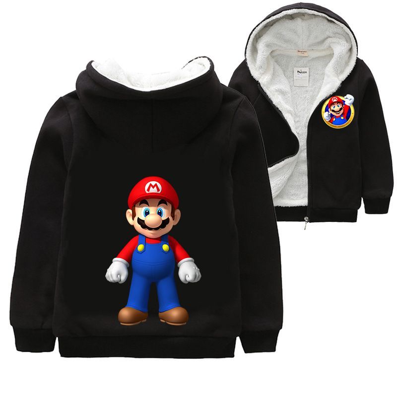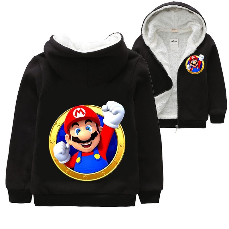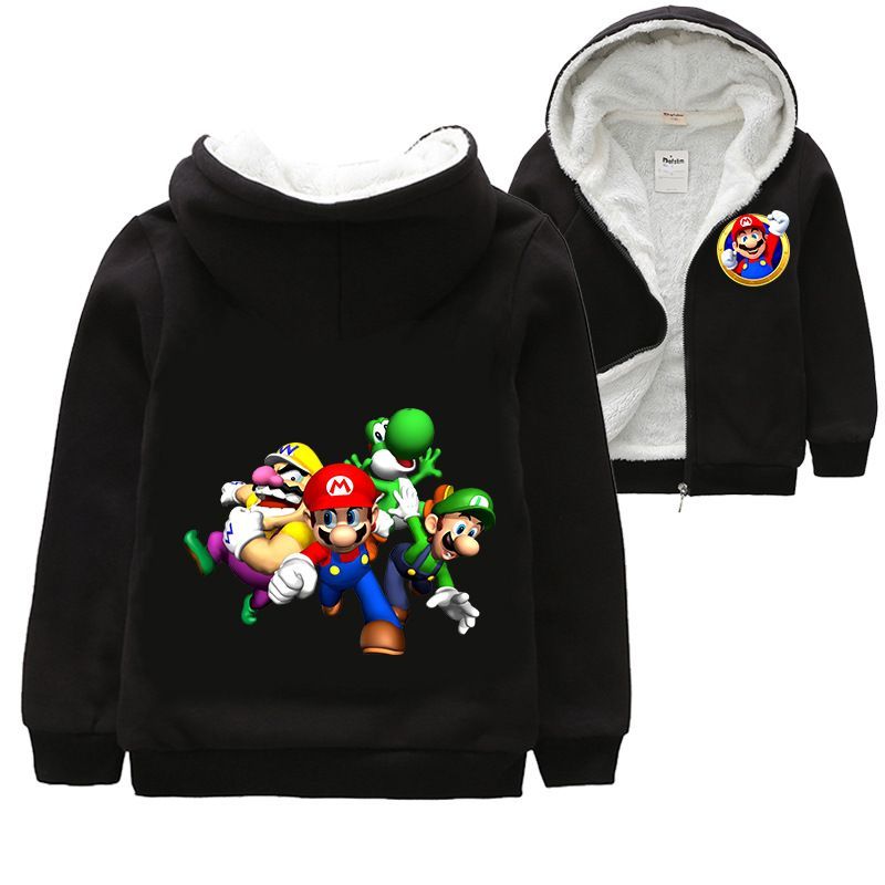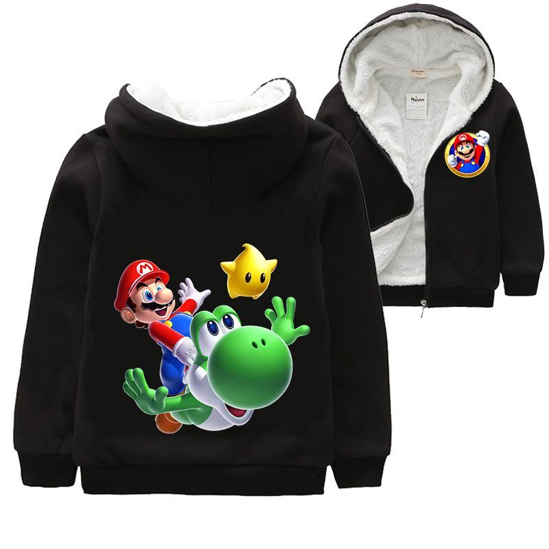 Kinder SuperMario Hoody Yoshi Luigi 3D Druck Zip Sweatshirts Mantel mit Berber Fleece