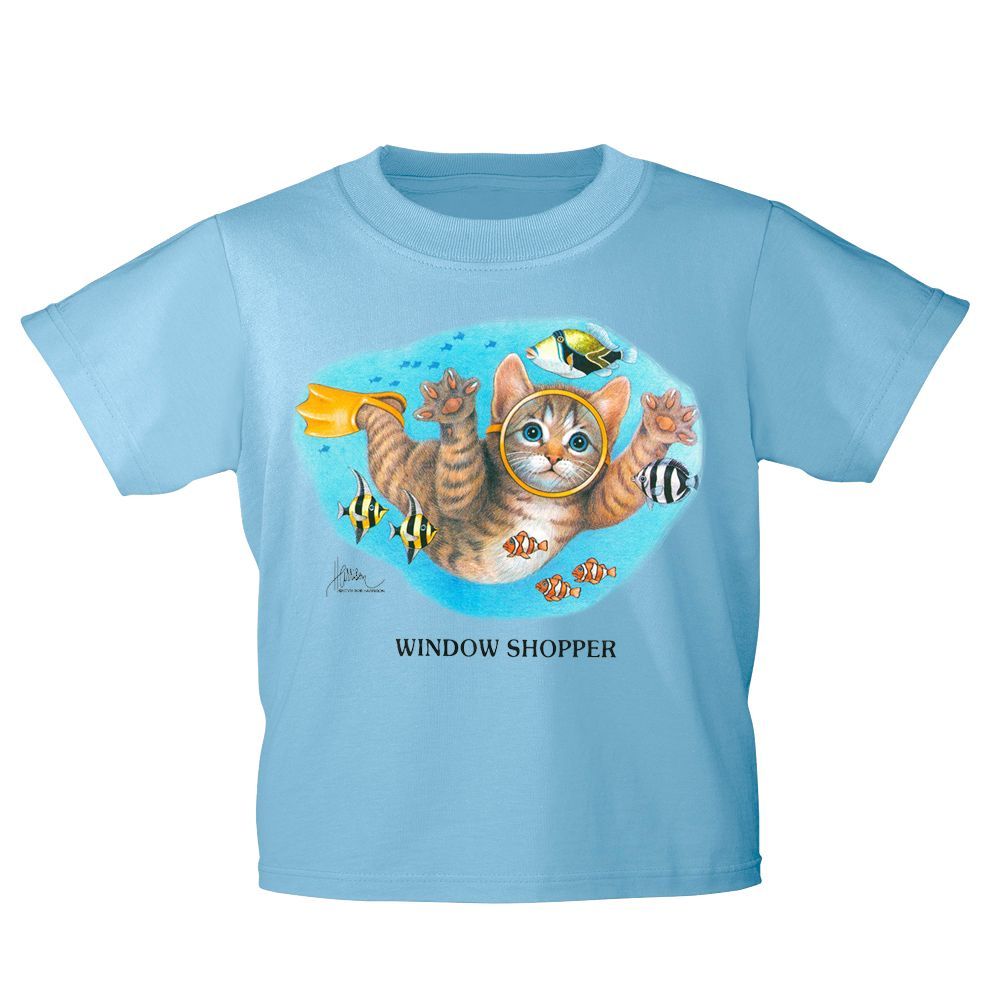 Kinder T-Shirt mit Print Cat Katze Taucher Fische KA065/1 Gr. hellblau / 152/164