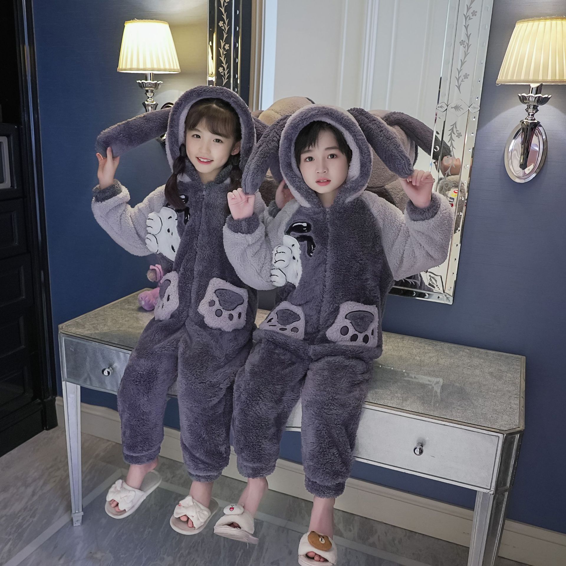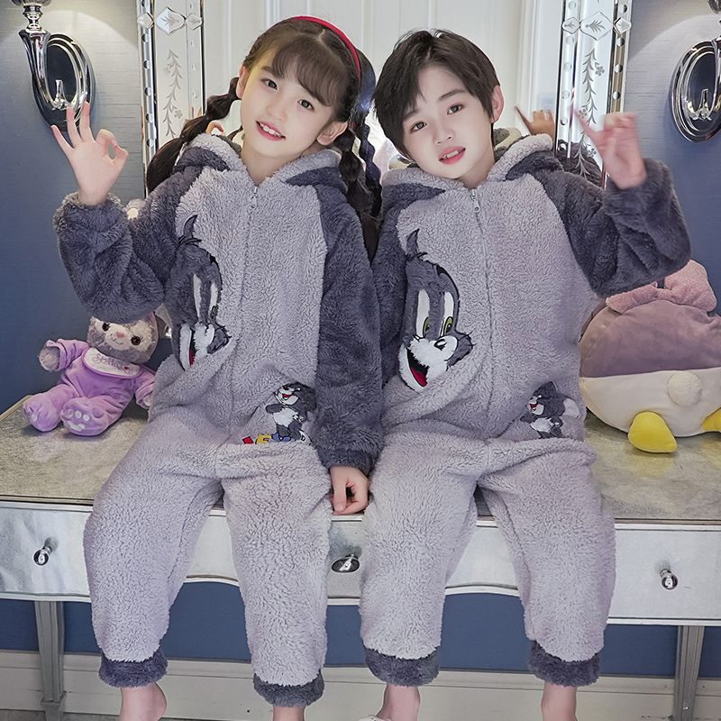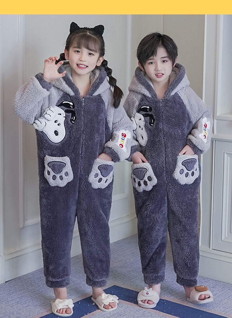 Kinder Tom and Jerry Hooded Pajamas Snoopy Zip Nachthemd Flannel Winter Jumpsuit