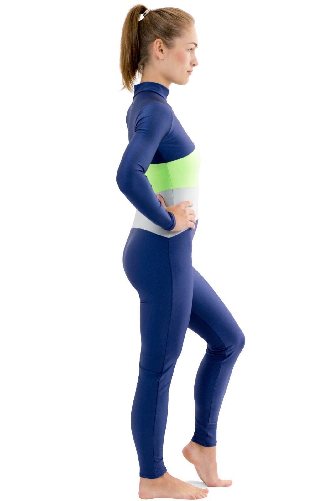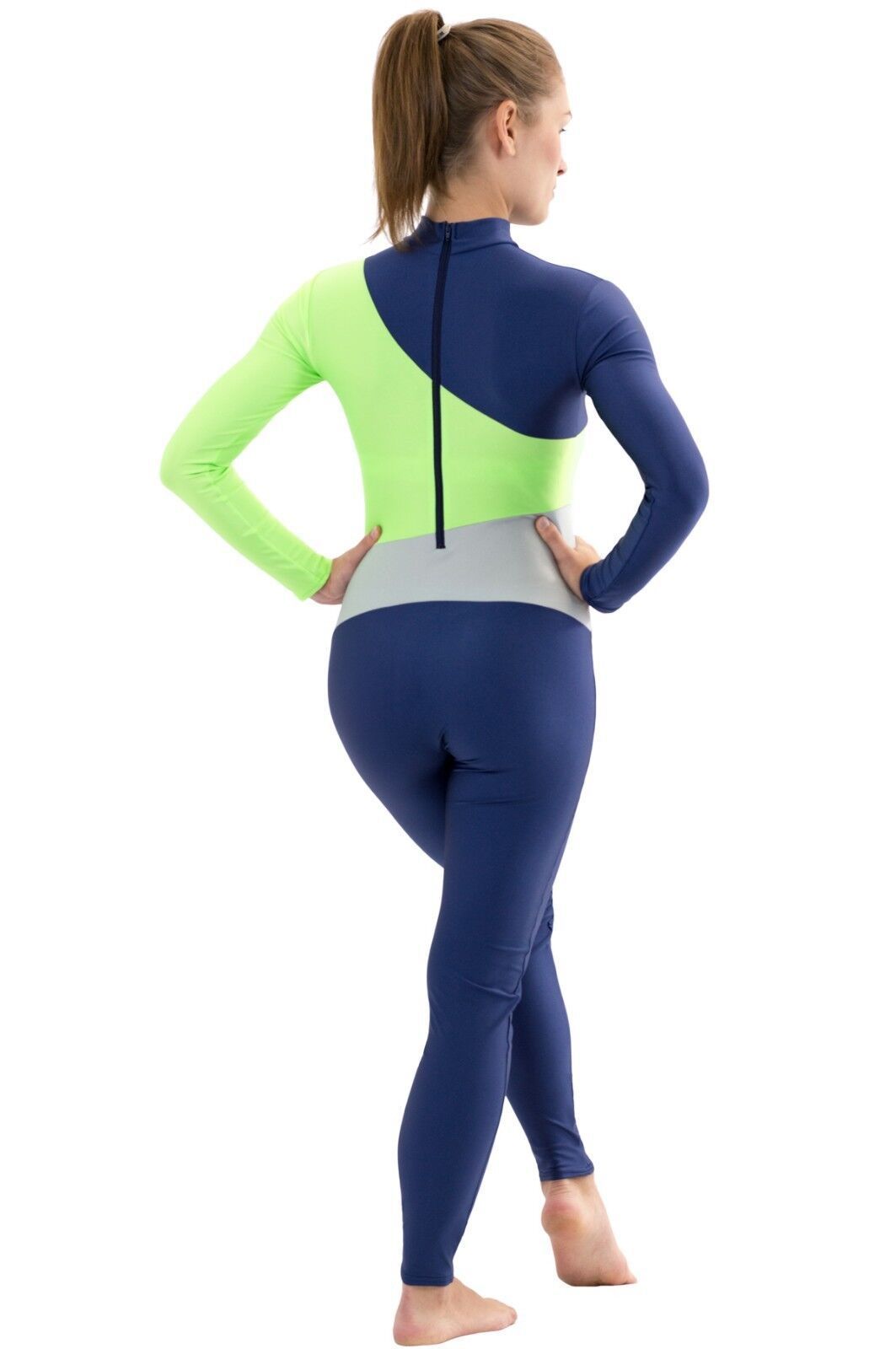 Kinder Voltigieranzug Ganzanzug "Susan" dreifarb. marine-neongrün-silber 116-176