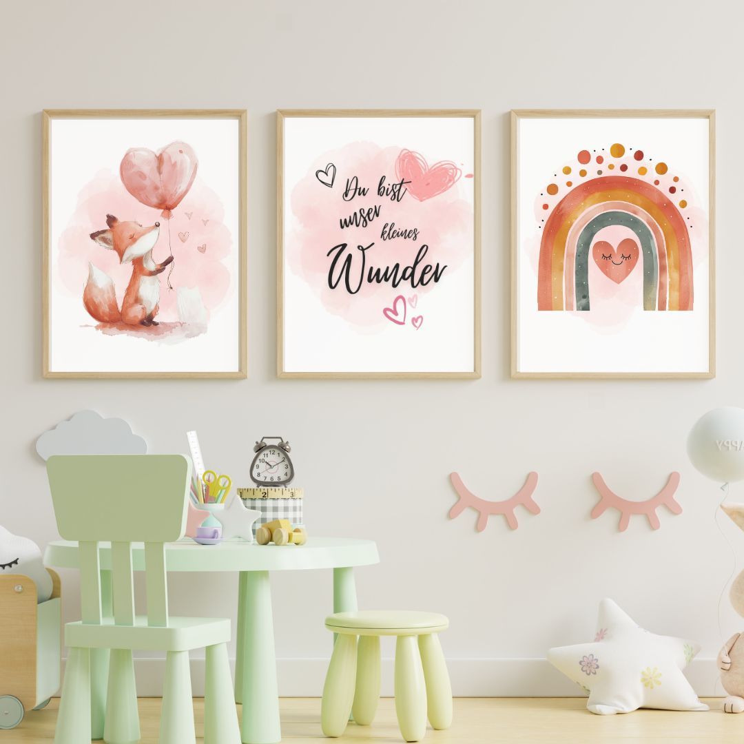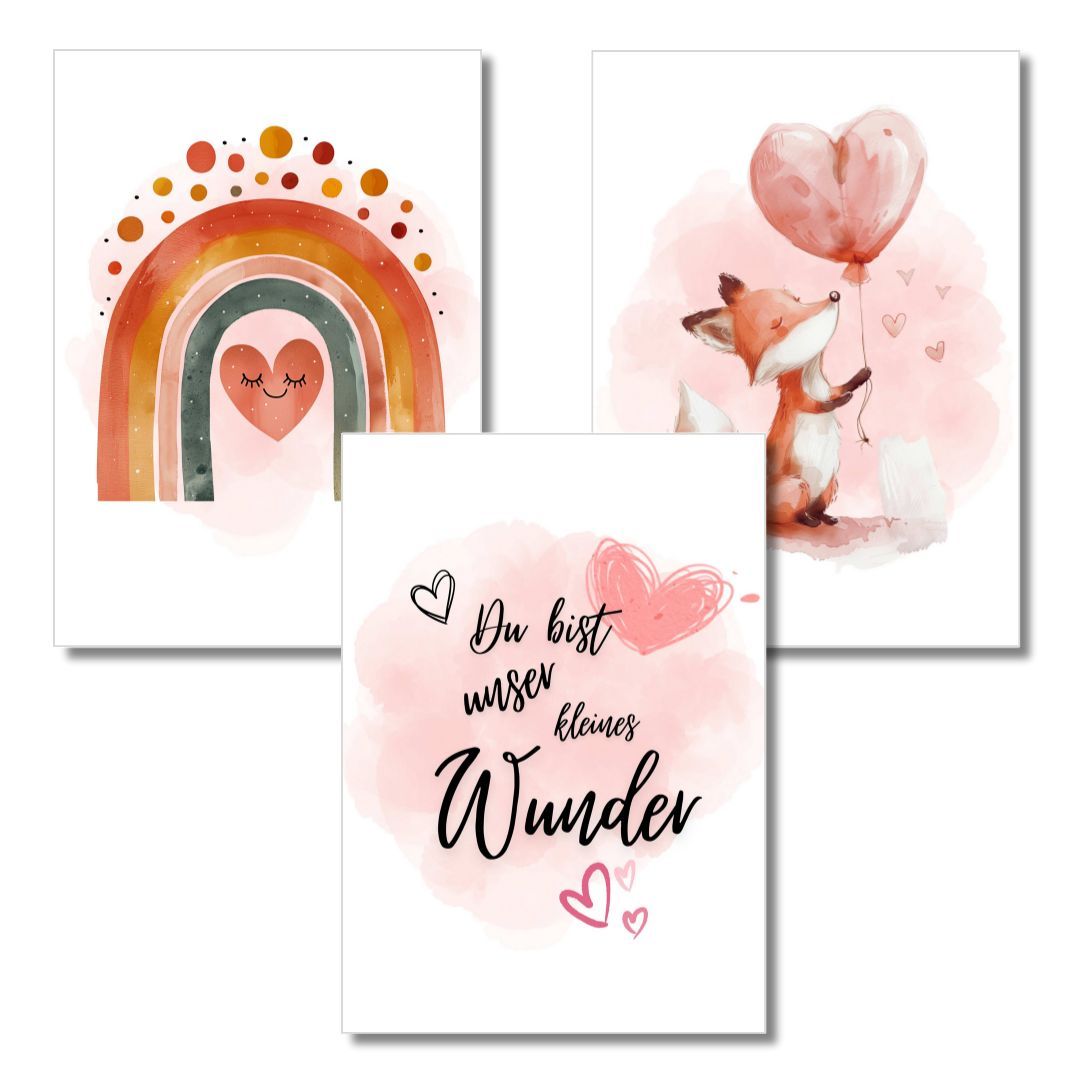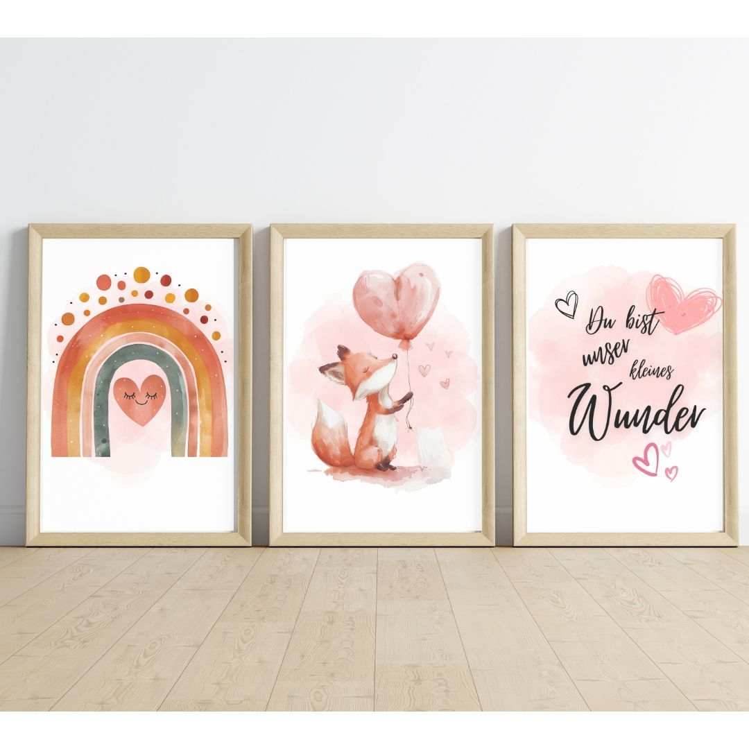 Kinder Wandbilder 3er Set Poster DIN A4 für Kinderzimmer Babyzimmer Deko Fuchs