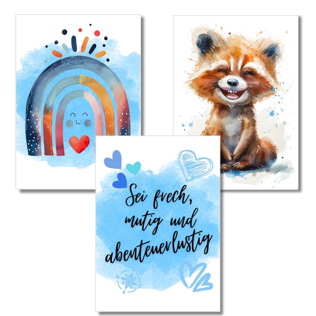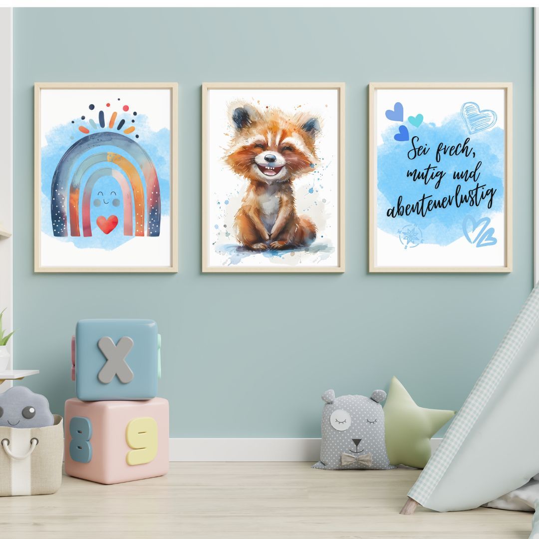 Kinder Wandbilder 3er Set Poster DIN A4 Kinderzimmer Babyzimmer Deko Waschbär