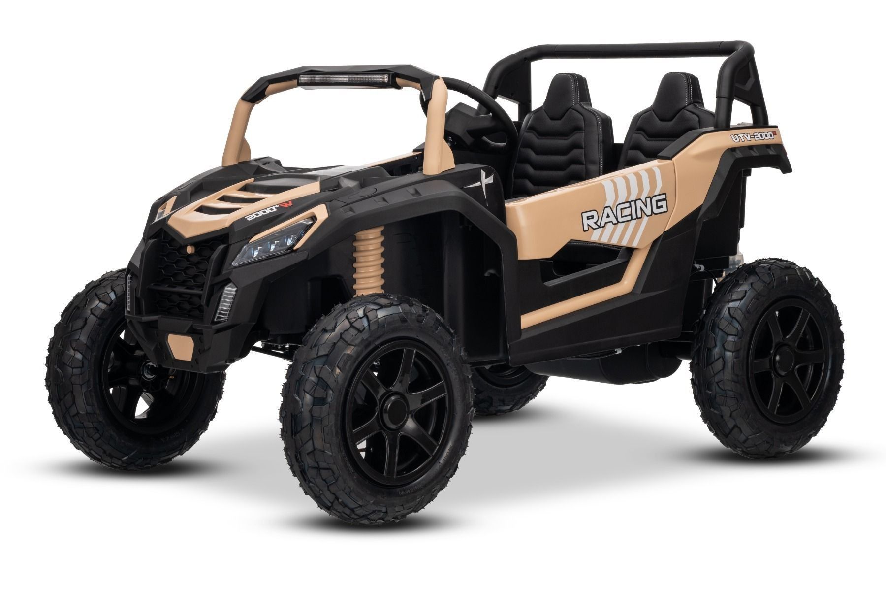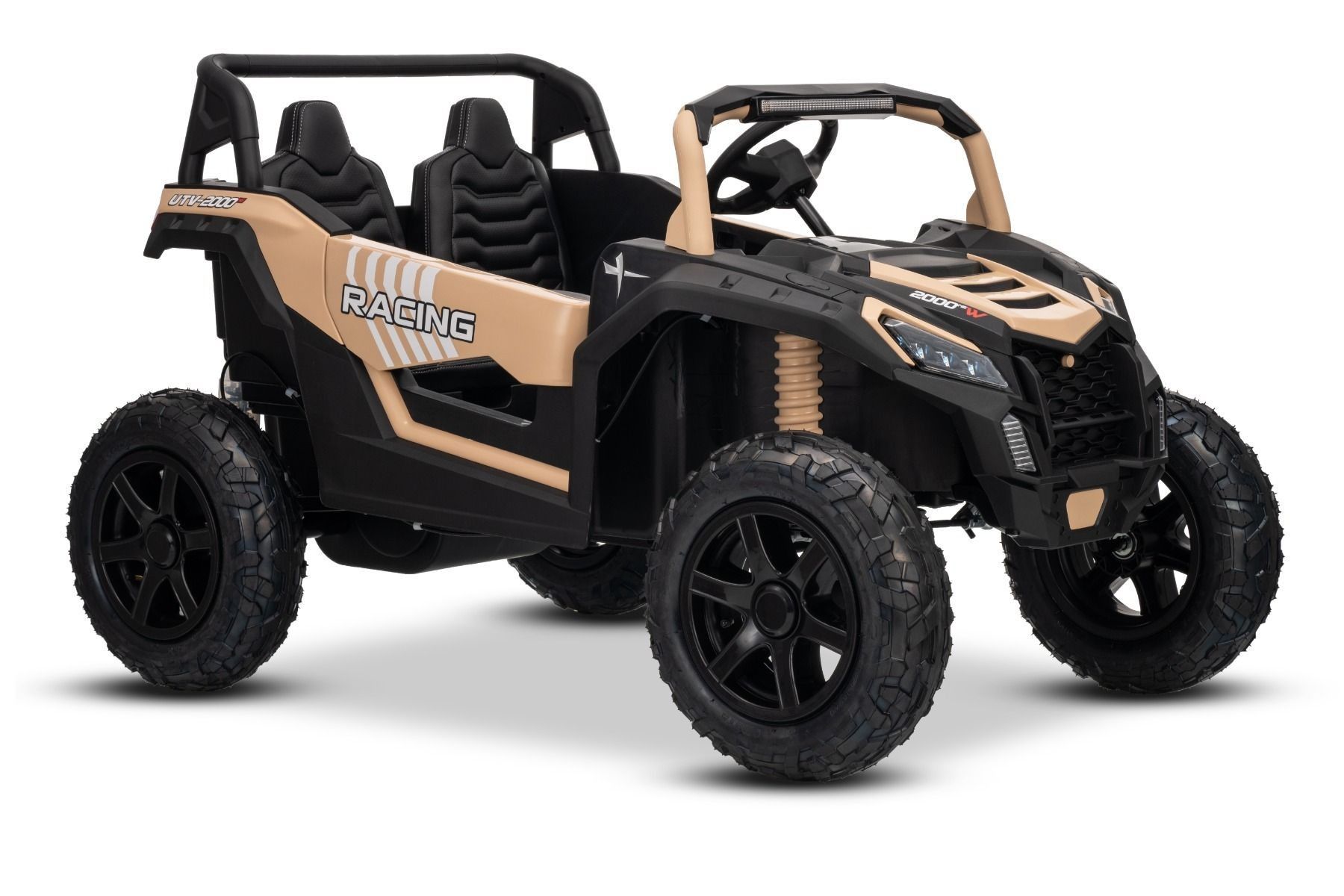 Kinderauto 24V Lithium Batterie Strong Kinder Elektro Auto 15km/h Kinderfahrzeug Elektro UTV2000 Strong Brushless Motor Metallgetriebe Luftreifen Scheibenbremsen Zweisitzer Ledersitz khaki