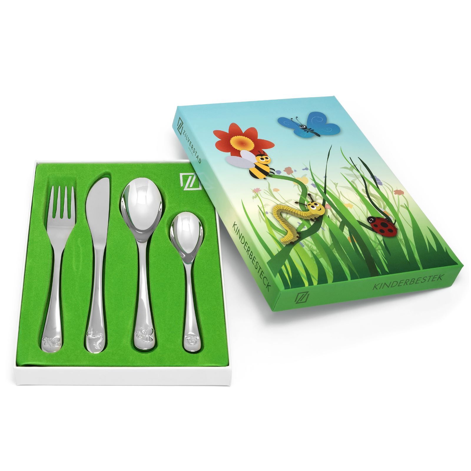 Zilverstad Kinderbesteck Set 4-teilig Motiv Insekten Besteckset 18/10 Edelstahl Ess-Besteck